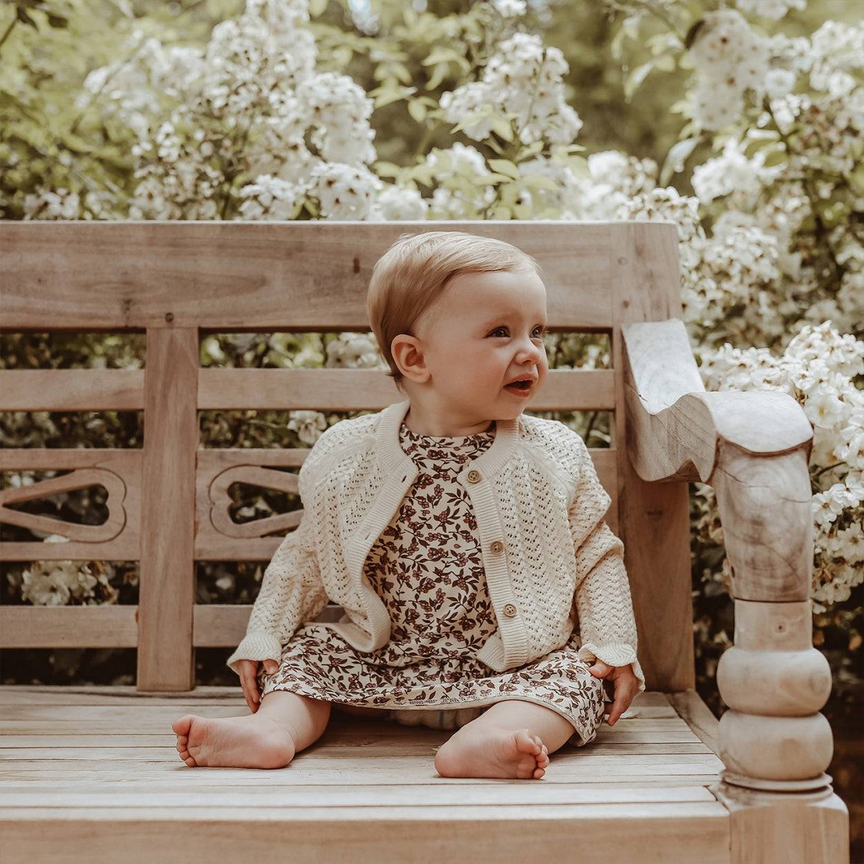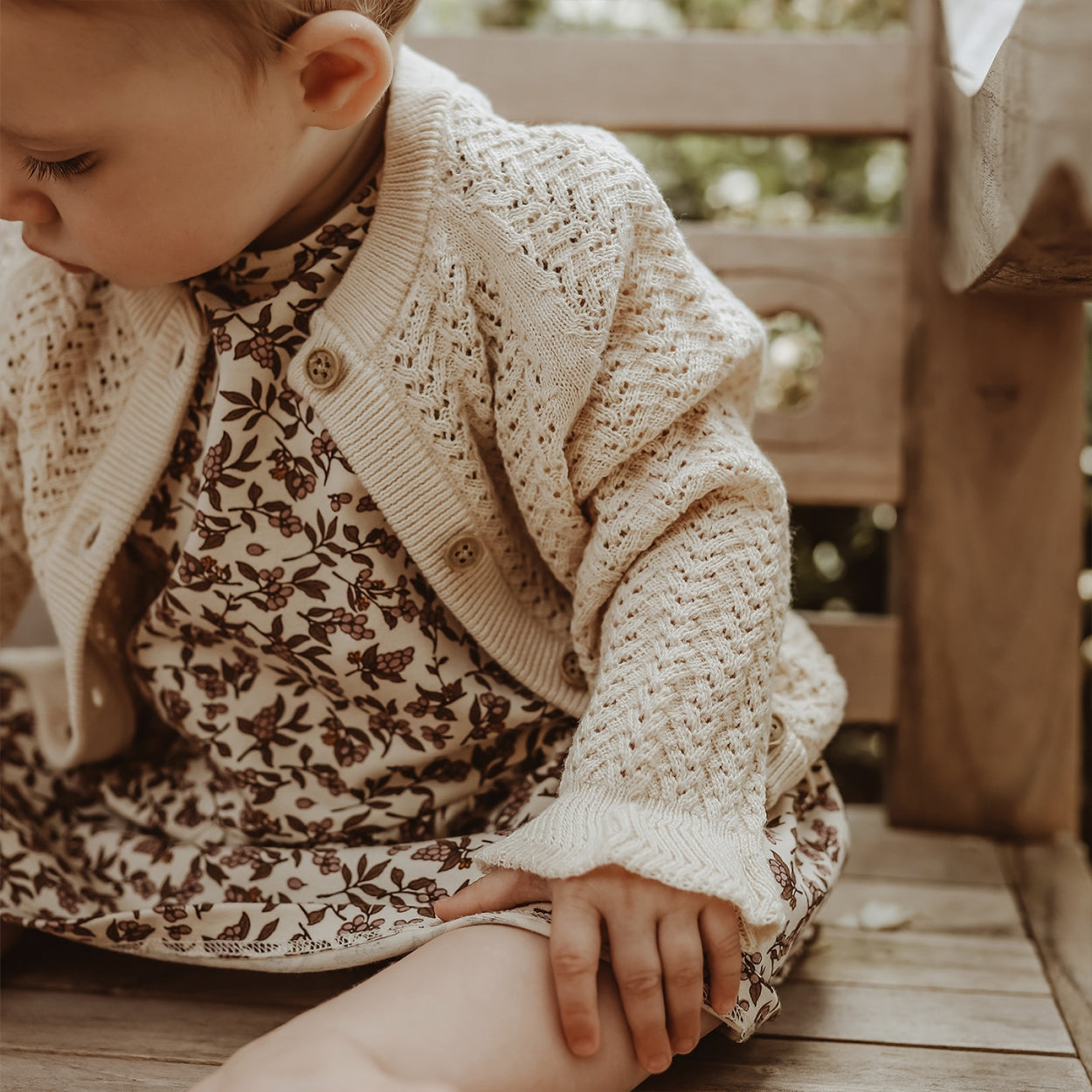 Wanneer je op zoek bent naar een fijn vest om een laagje warmte aan de outfit van jouw kindje toe te voegen, is het Joan vest precies het item wat je zoekt. Dit fijne vest is verkrijgbaar vanaf maat 50/56 tot 134/140 en is uitgevoerd in een combinatie van acryl en katoen. Het Joan vest heeft een prachtig gehaakt motief en is bij de mouwen afgewerkt met ruffle details. Het vest is perfect voor de koude zomeravonden en kan een groot deel van het jaar gedragen worden. Combineer het Joan vest bijvoorbeeld met de Perla blouse en de Jill legging en jouw kleintje is helemaal klaar om de show te stelen!
