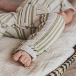 Deze newborn baby onesie is een comfortabele en stijlvolle must-have voor de eerste maanden. De subtiele verticale streepprint in zachte groentinten geeft dit pakje een rustige, natuurlijke uitstraling. De onesie is voorzien van een knoopsluiting aan de voorzijde, waardoor aan- en uitkleden eenvoudig gaat. Ideaal tijdens verschoonmomenten of snelle outfitwissels. De korte mouwtjes maken dit baby pakje perfect voor het voorjaar en de zomer, maar ook fijn te combineren met een vestje op koelere dagen. De zachte, ademende stof voelt comfortabel aan op de gevoelige newborn huid. Dankzij de rechte pasvorm en het soepele materiaal heeft je baby voldoende bewegingsvrijheid. De twee opgestikte zakjes aan de voorkant geven deze baby onesie een speelse en unieke touch.