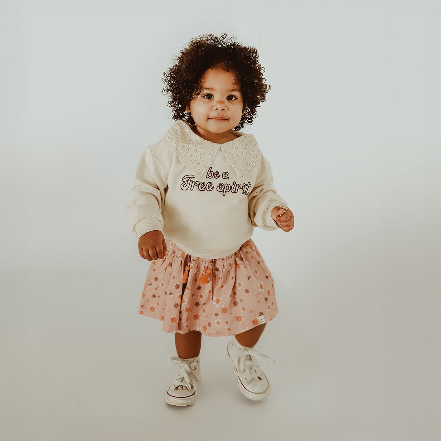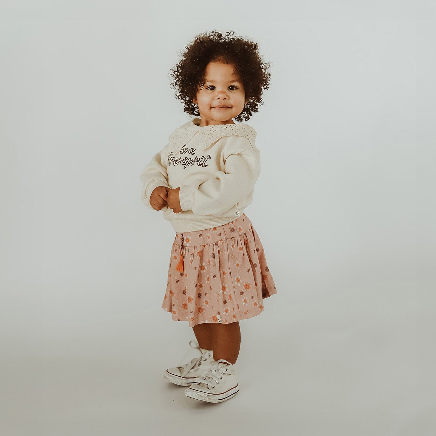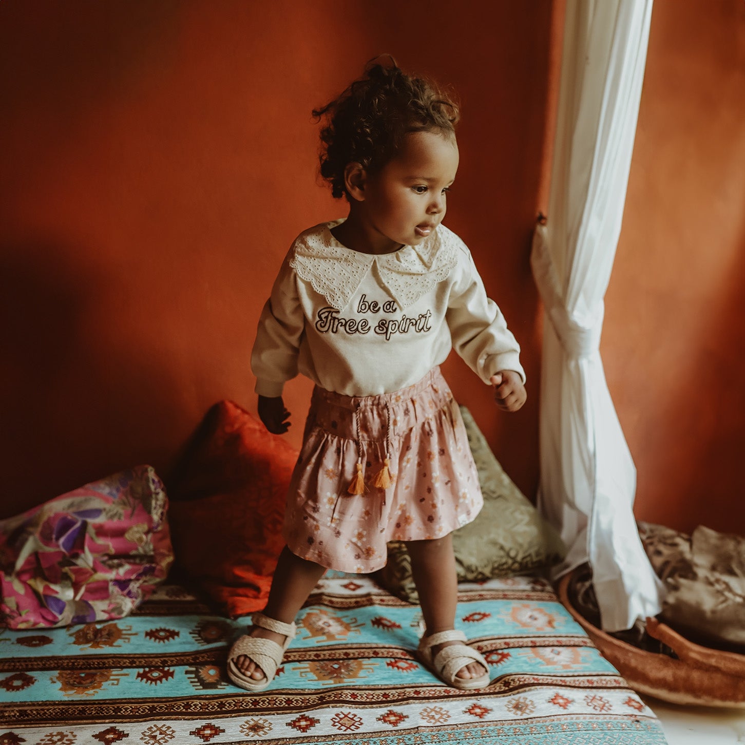 Voeg een fleurige touch toe aan de outfit van jouw kindje met de Martha rok, verkrijgbaar vanaf maat 80 tot 104. De rok is uitgevoerd in 100% viscose en voelt heel zacht aan. De Martha rok heeft een elastische tailleband met extra trekkoord, voor de ideale pasvorm., Aan het trekkoord hangen nog twee tassels, die een speels effect toevoegen. Combineer de Martha rok met de Marley sweater en maak de look compleet! Heb jij dit fleurige rokje al aan het winkelmandje toegevoegd?