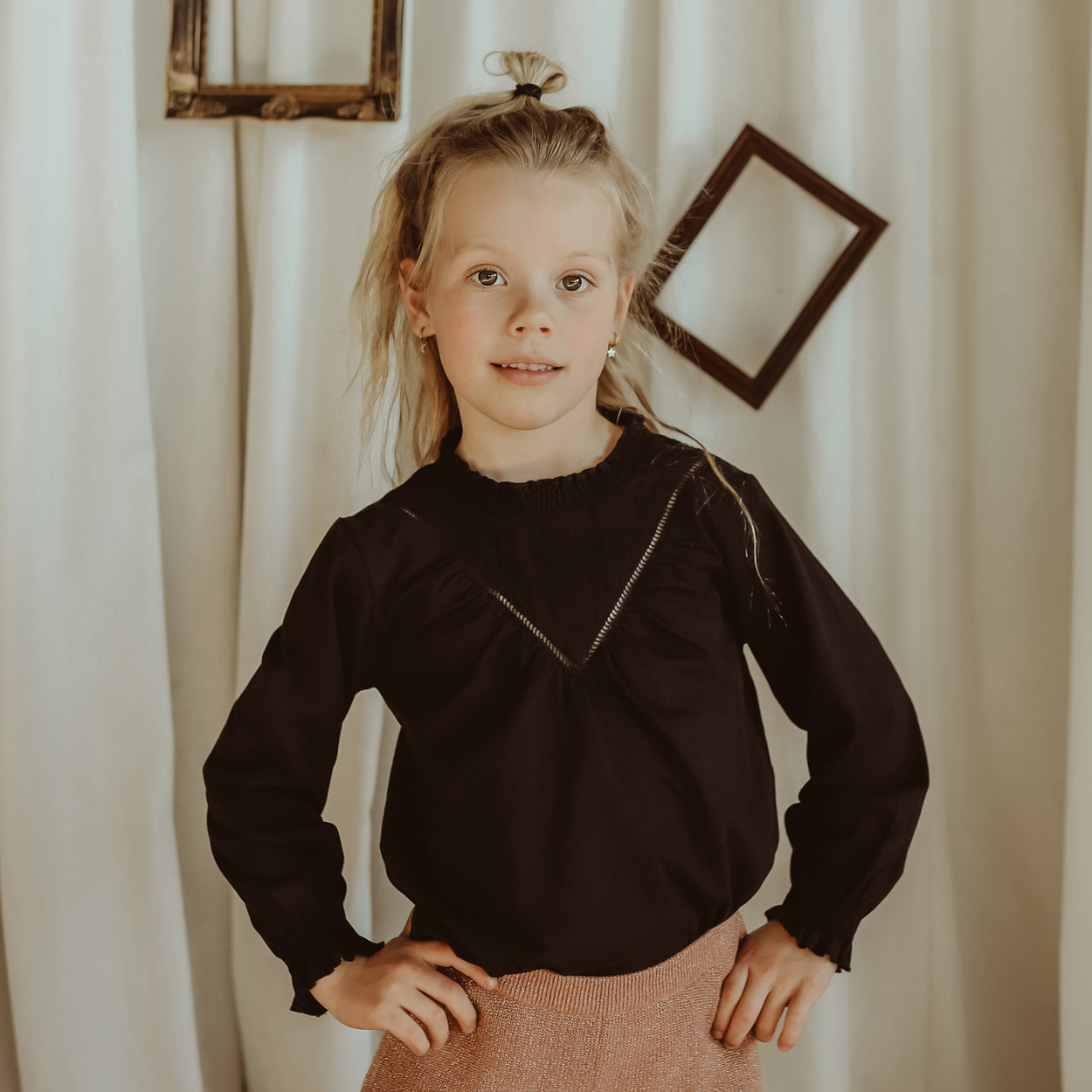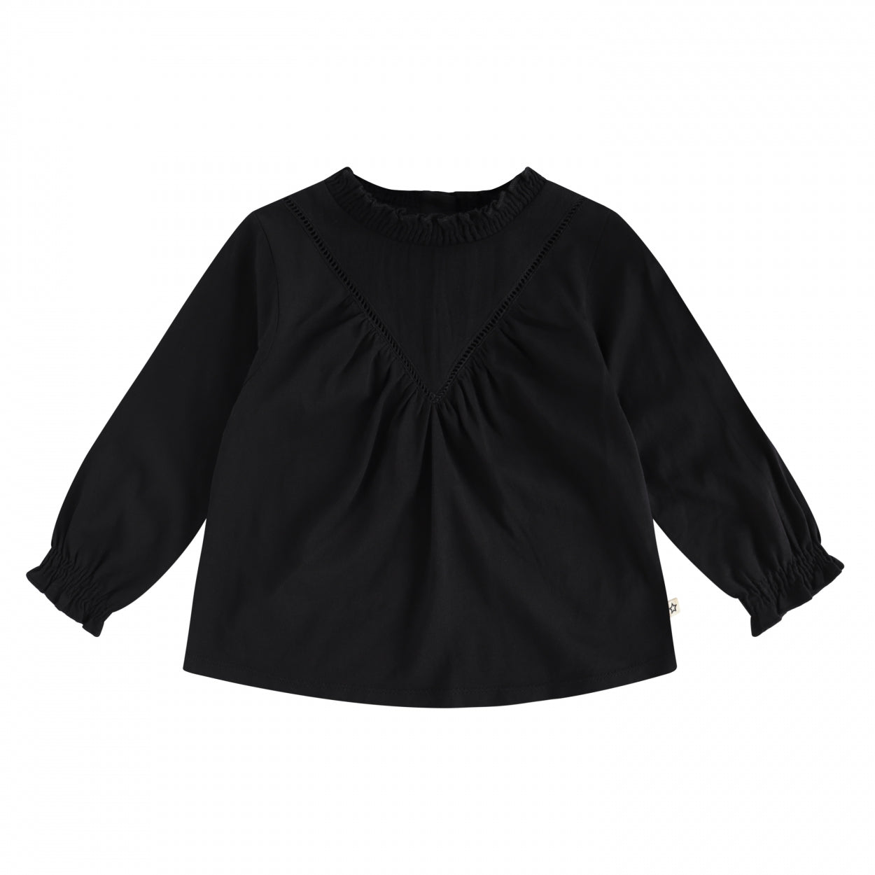 Deze effen blouse heeft ruches aan de voorzijde en is voorzien van lange mouwen.