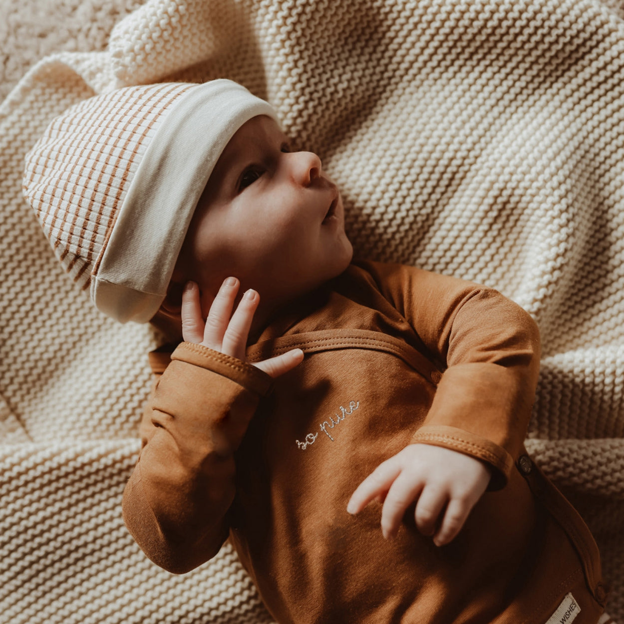 Het Nais overslagvest is verkrijgbaar in maat 50 tot 74 en is uitgevoerd in een combinatie van katoen en modal. Deze combinatie zorgt voor een ademende, zachte stof die tot 50% meer vocht opneemt. Hierdoor voelt het vest minder plakkerig en zweterig voor jouw kleintje. Het Nais vest is een overslagvest wat makkelijk is om aan te trekken, helemaal wanneer je de handigheid van het aankleden van jouw kindje nog even moet vinden. Je doet het vestje namelijk eerst helemaal open om daarna de armen door de mouwen te doen. Vervolgens vouw je de rechter flap over het buikje en maak je deze vast met de drukknopen. Daarna vouw je de linker flap daar overheen en maak je deze ook met de drukknoopjes vast! Door de rekbaarheid van de stof gaat dit overslagvest precies goed rond het bovenlichaam zitten en houdt het je kleintje lekker warm. Het Nais vest is afgewerkt met een so pure quote wat met een wit stiksel op de borst geborduurd staat en een sterretjesdetail op een van de drukknoopjes. Maak het lookje compleet en combineer het Nais vest met het Noah broekje, maar het is ook een goede match met het Nesse broekje! Welke van deze items ga jij aan het winkelmandje toevoegen?