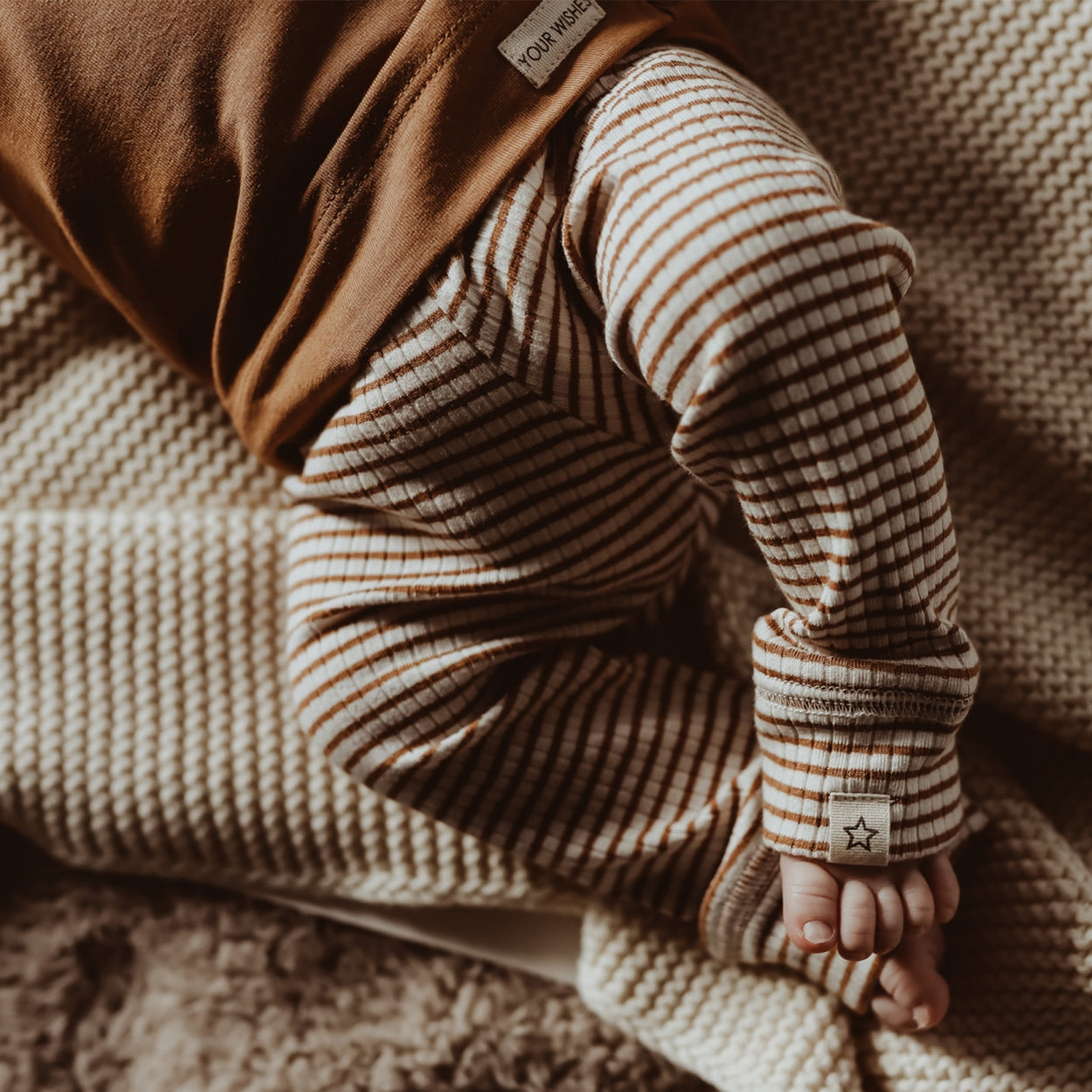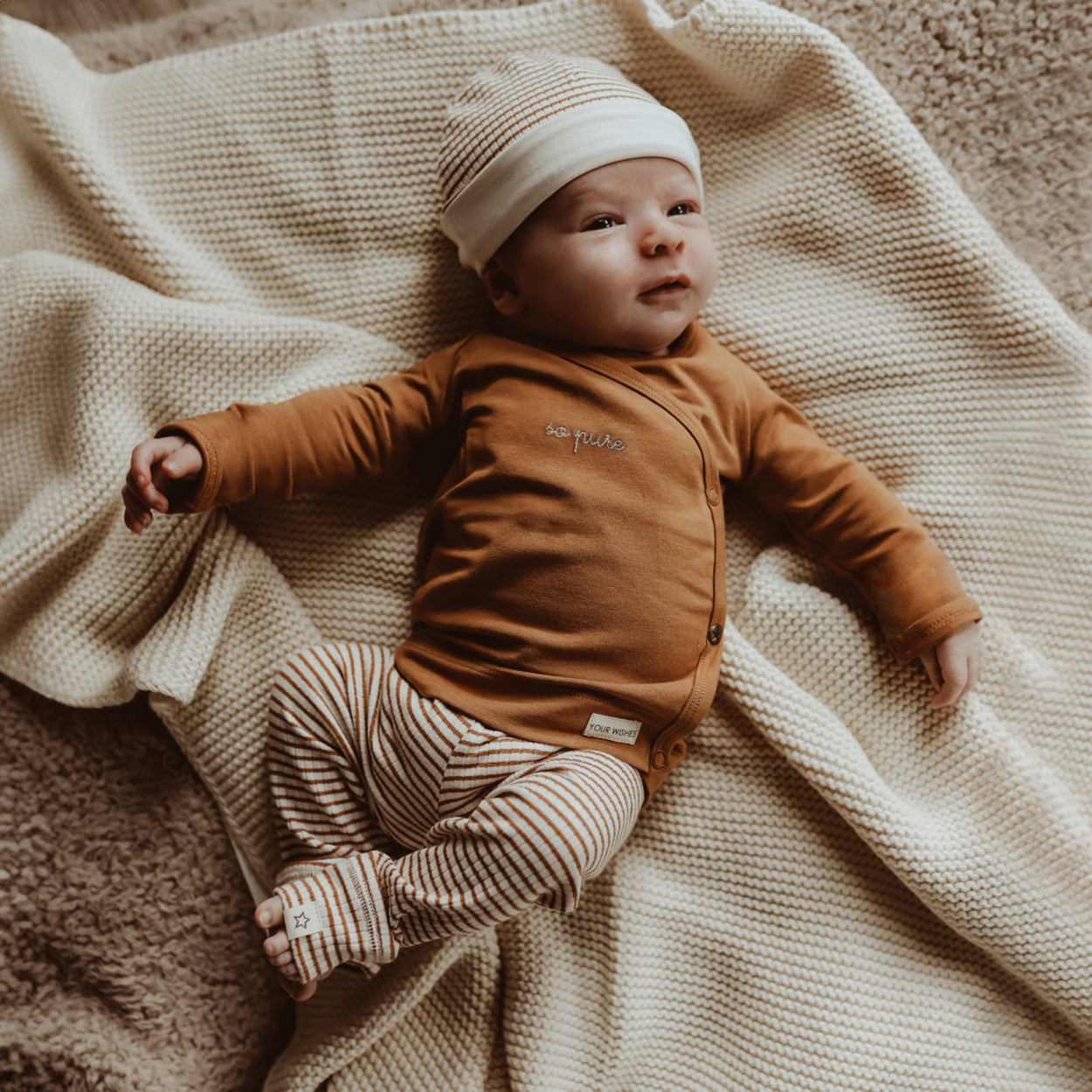 Het Noah broekje is verkrijgbaar vanaf maat 50 tot 74 en uitgevoerd in een combinatie van katoen en elastaan waar ook een subtiel ribpatroon in de stof verwerkt is. Dankzij de rekbaarheid van de stof voelt het heerlijk zacht aan en sluit precies goed rond de beentjes en billetjes van jouw kindje. Het Noah broekje is de perfecte basic om in combinatie met een rompertje te dragen, zoals bijvoorbeeld de Nilan romper, en kan daarom niet ontbreken in de kledingkast van jouw kleintje!