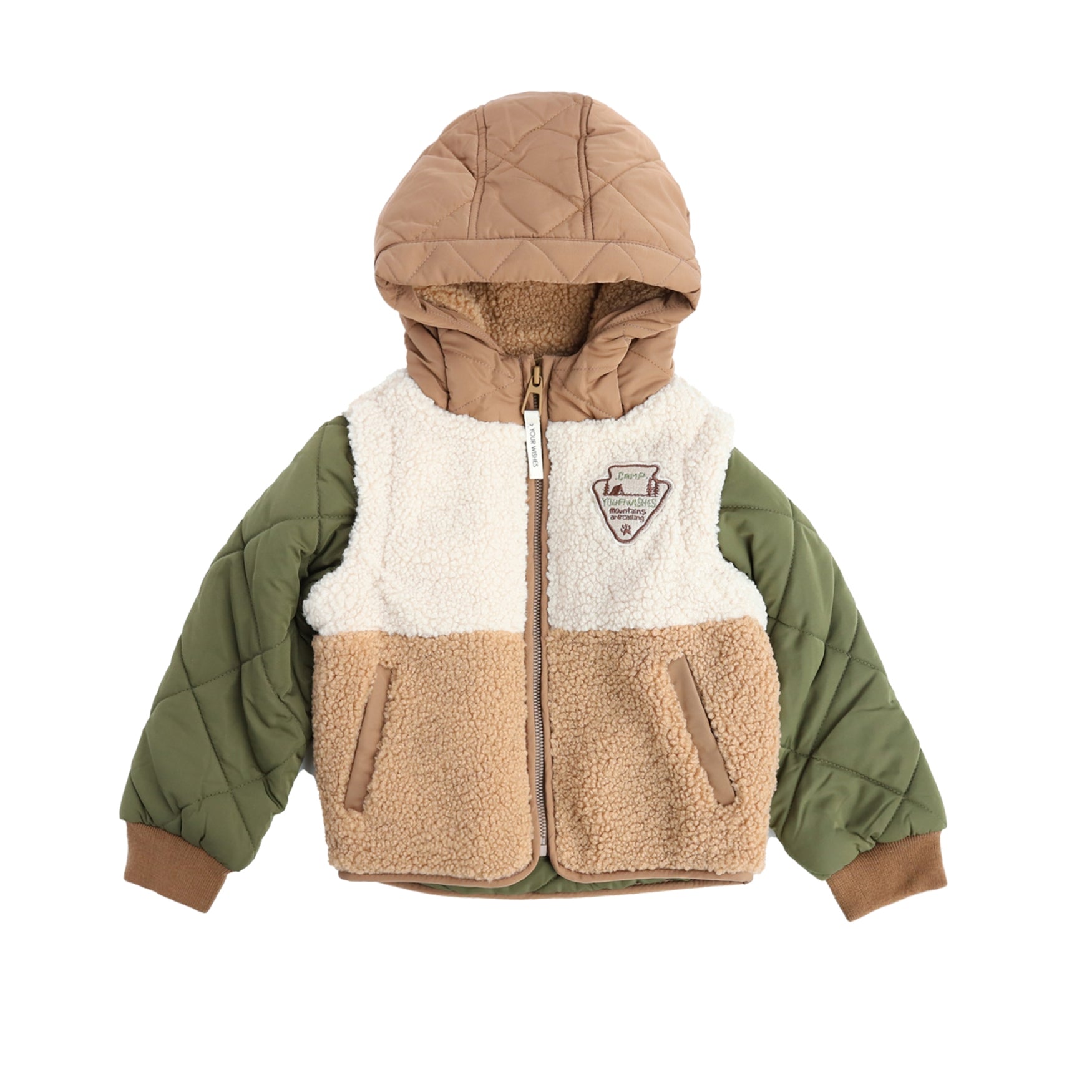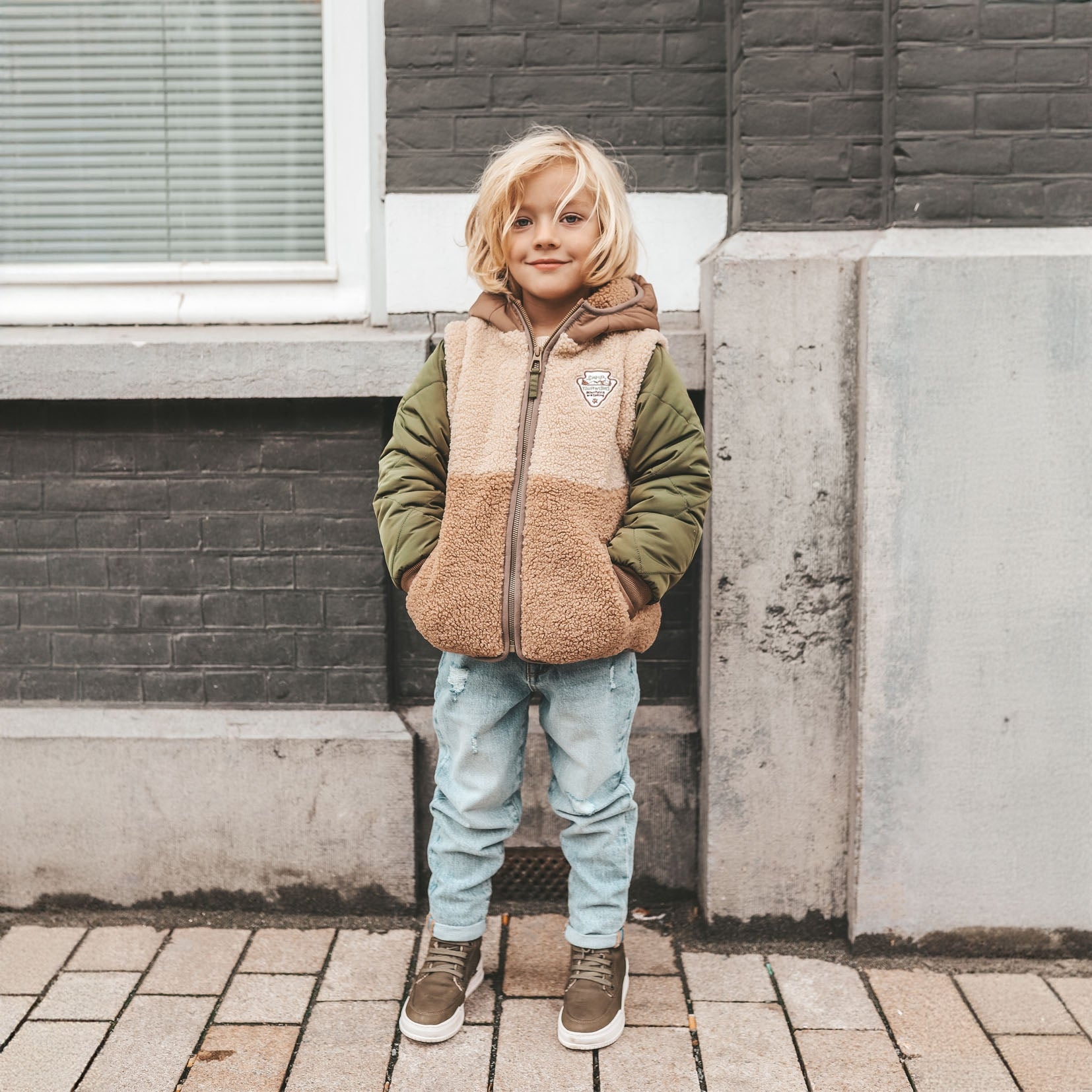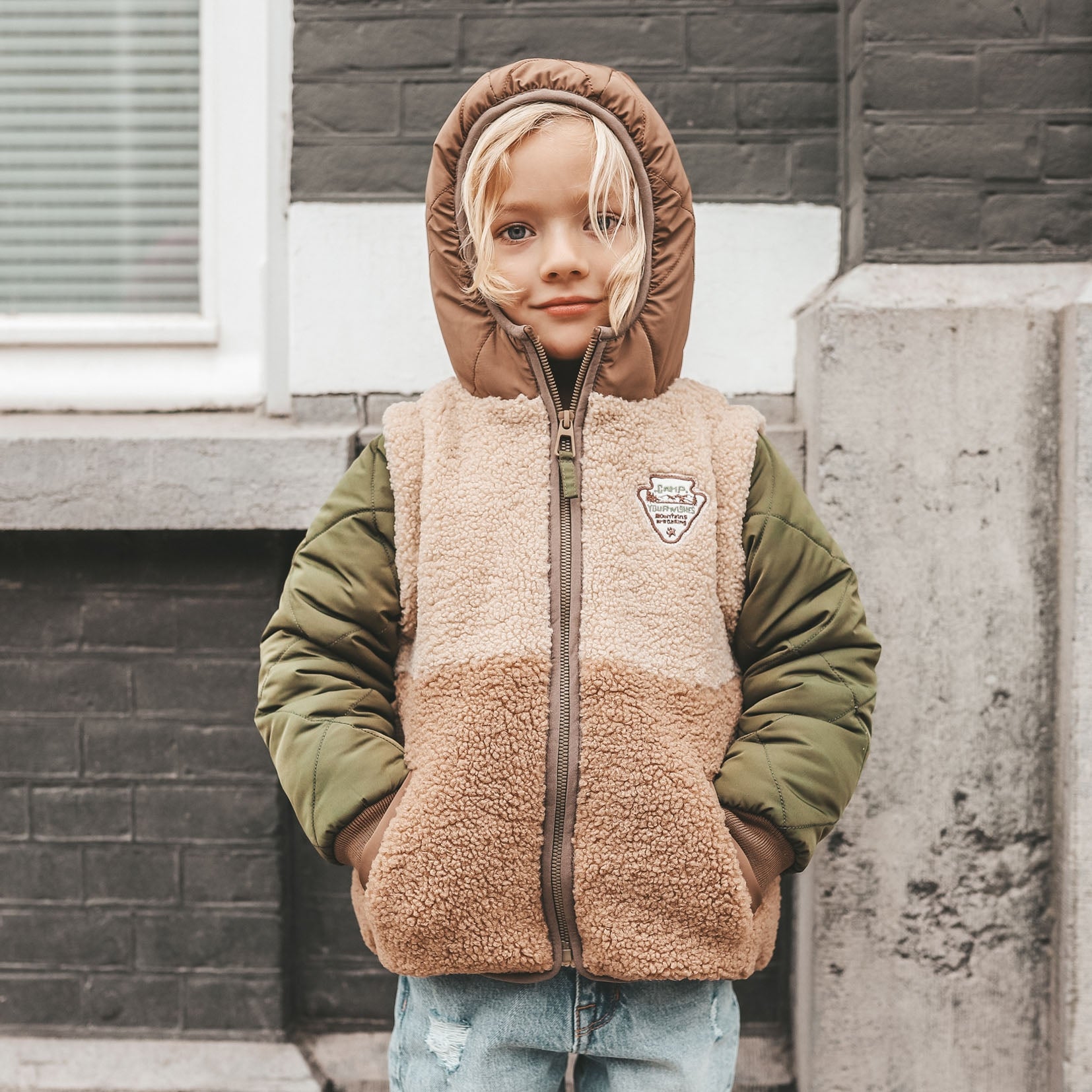De Obi hybride jas is de ideale toevoeging aan de gardarobe van je kindje en is verkrijgbaar vanaf maat 74/80 tot en met 146/152. De jas is uitgevoerd in een combinatie van twee kleuren teddystof en donkergroen nylon. De jas sluit door middel van een ritssluiting, heeft een patch op de borst en twee steekvakken. De mouwen en capuchon hebben beide een waterafstotende finish en kunnen dus prima tegen een spat water. De gequilte mouwen, teddystof voering van de capuchon en de teddy body in combinatie met de gebreide cuffs aan de uiteinden van de mouwen zorgen ervoor dat de Obi hybride jas geen kou doorlaat en jouw kindje dus lekker warm blijft! Zelfs de binnenkant van de jaszakken van de winterjas zijn afgewerkt met fleece stof om de handjes zo warm mogelijk te houden. De Obi hybride jas heeft verder nog een binnenzak met klittenbandsluiting en een naamlabel erop. We noemen dit overigens een hybride jas, omdat je de Obi winterjas afritsbare mouwen heeft en daarmee, naast als winterjas, ook als bodywarmer gedragen kan worden! De rits zit verstopt onder de teddy stof, dus als je de mouwen wilt afritsen hoef je alleen de teddystof een klein beetje om te vouwen. Eigenlijk krijg je met de Obi hybride jas dus twee items voor de prijs van één ;-).