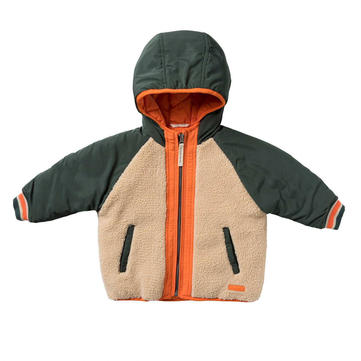 De stoere Olaf winterjas kan je meteen herkennen aan de teddy stof in combinatie met het stoere neon oranje en is verkrijgbaar vanaf maat 74 tot 146/152. De groene nylon stof bij de armen en capuchon is waterafstotend, waardoor de jas prima tegen een spat water kan. De teddy buitenkant, de gequilte binnenkant en de elastische, gebreide cuffs zorgen er samen voor dat de jas geen kou doorlaat, waardoor jouw kleintje lekker warm blijft. Zelfs de binnenkant van de jaszakken zijn afgewerkt met fleecestof om de handjes extra warm te houden. De stoere teddy jas is afgewerkt met een ritssluiting met kinbescherming en de binnenkant van de jas is afgewerkt met een naamlabel. Wanneer je op zoek bent naar een hippe maar toch stoere winterjas, is de Olaf precies wat jij zoekt!