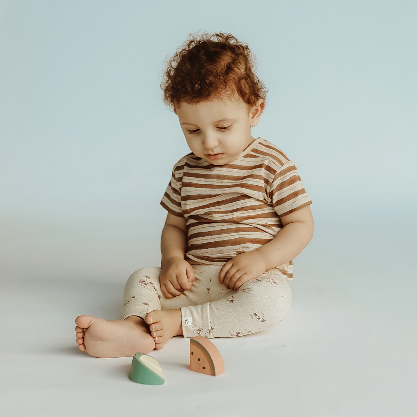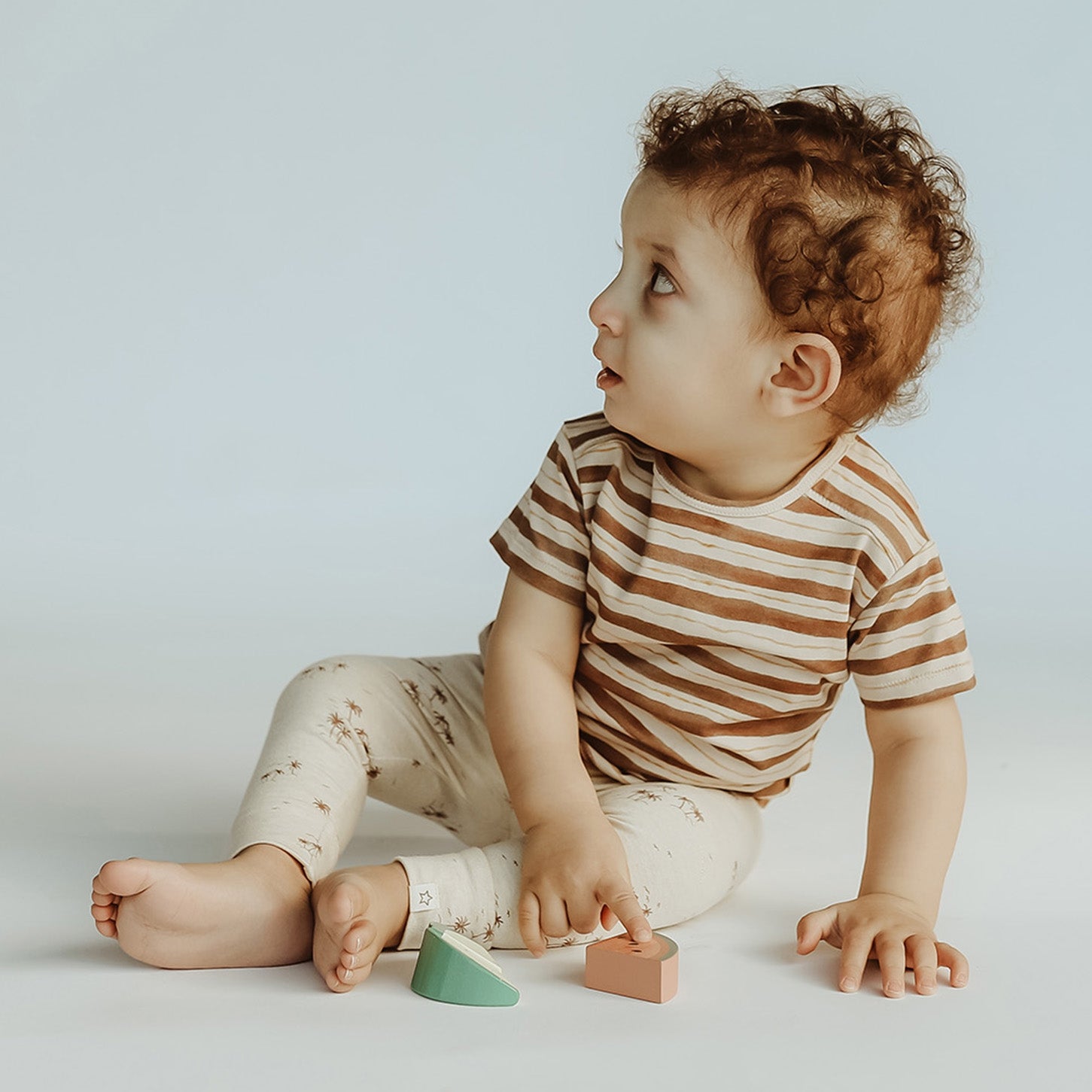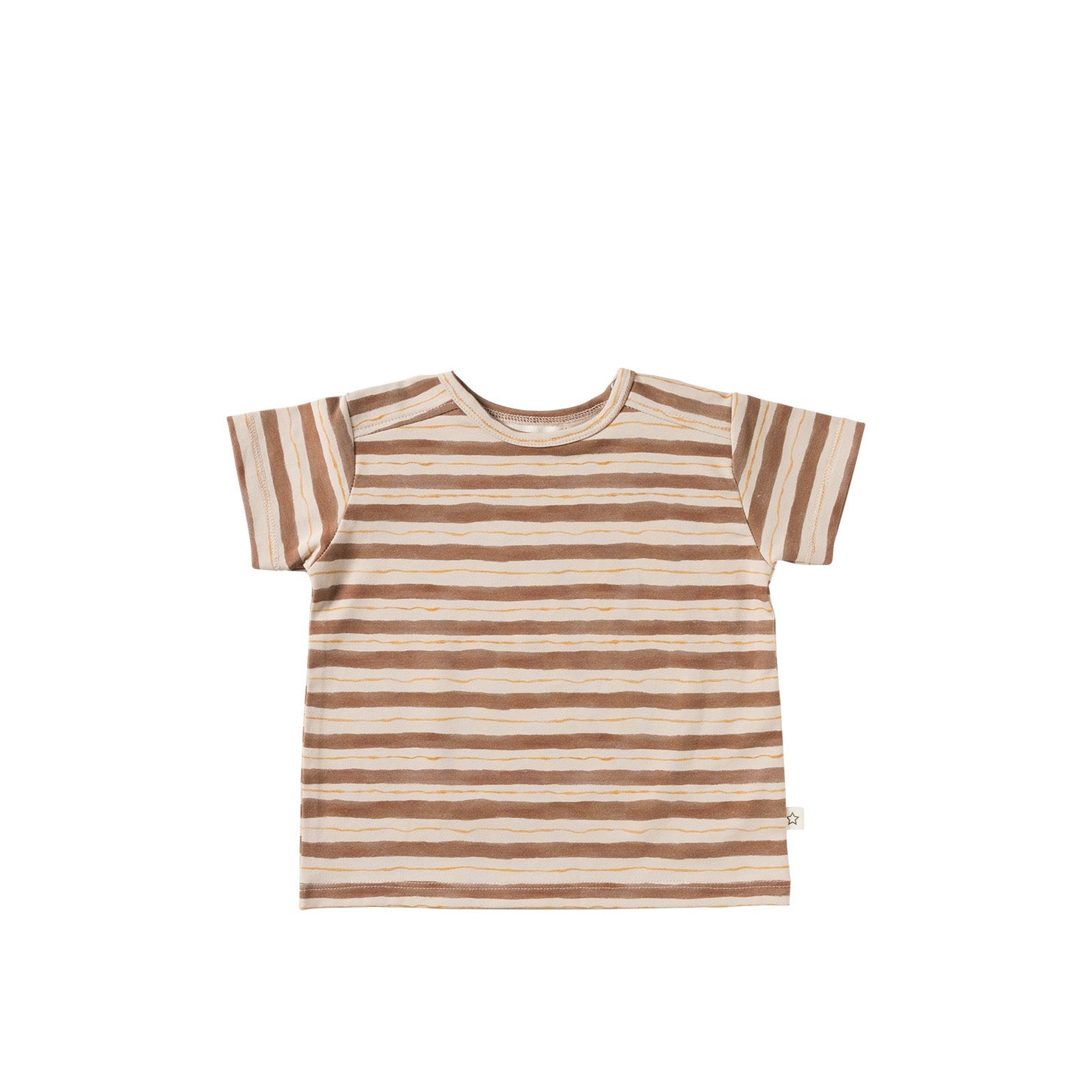 Met het Pete T-shirt heeft jouw kleintje altijd een streepje voor! Dit fijne newborn shirtje is verkrijgbaar vanaf maat 50 tot 74 en is uitgevoerd in een combinatie van katoen en elastaan. Hierdoor voelt het shirtje zacht aan en sluit het goed aan rond het bovenlichaam van jouw kindje. De print van het Pete newborn T-shirt is gebaseerd op aquarelstrepen en geven een speels effect. In de hals zijn twee drukknopen verwerkt die het gat kunnen vergroten, om het over het hoofd aan- en uittrekken makkelijker te maken. Maak het lookje compleet en combineer het Pete T-shirt met het Marcus broekje.