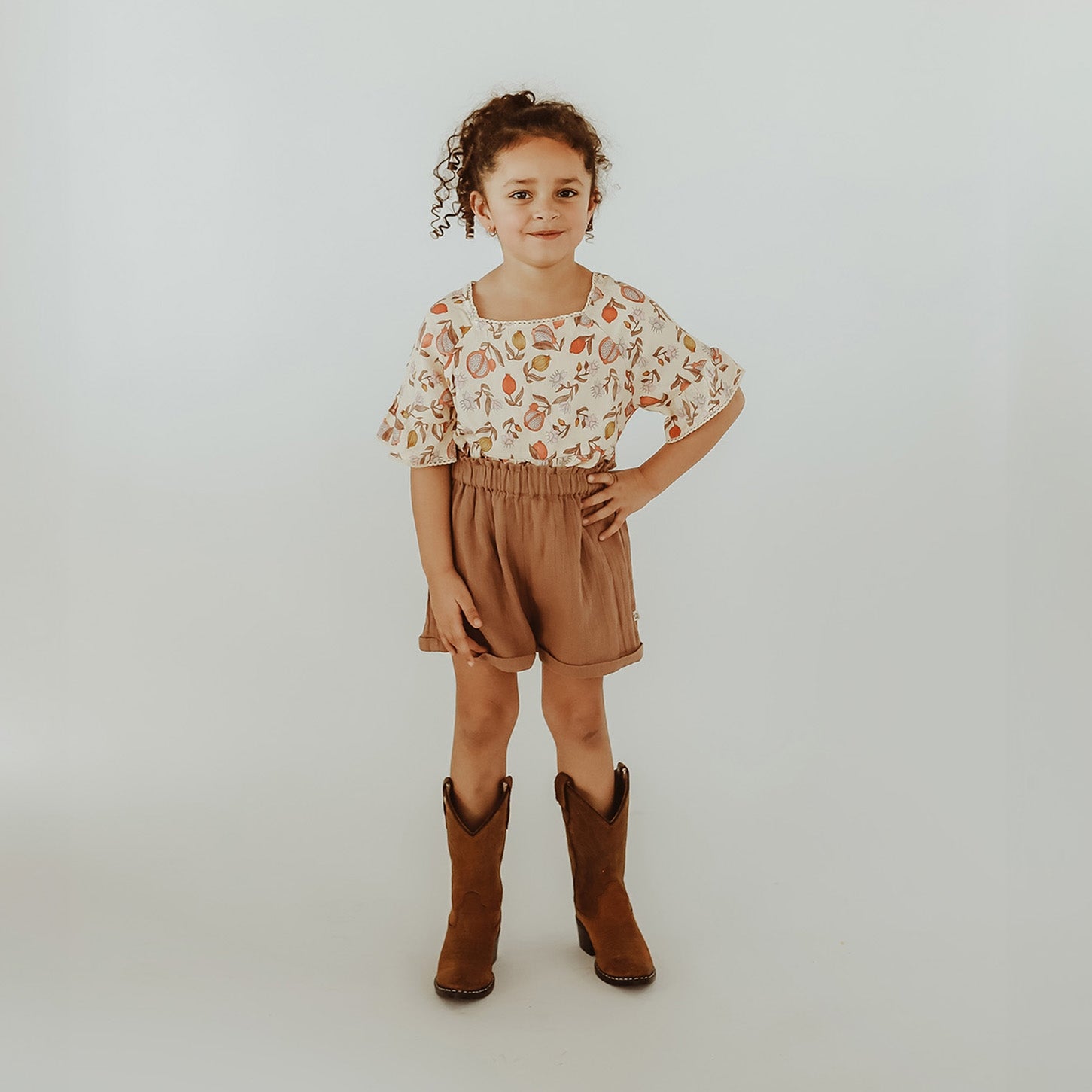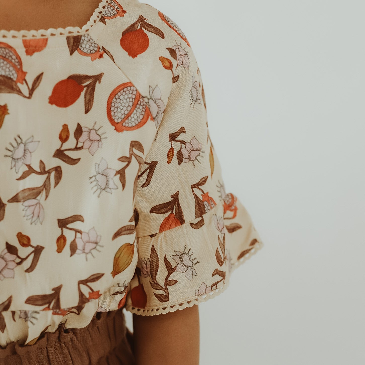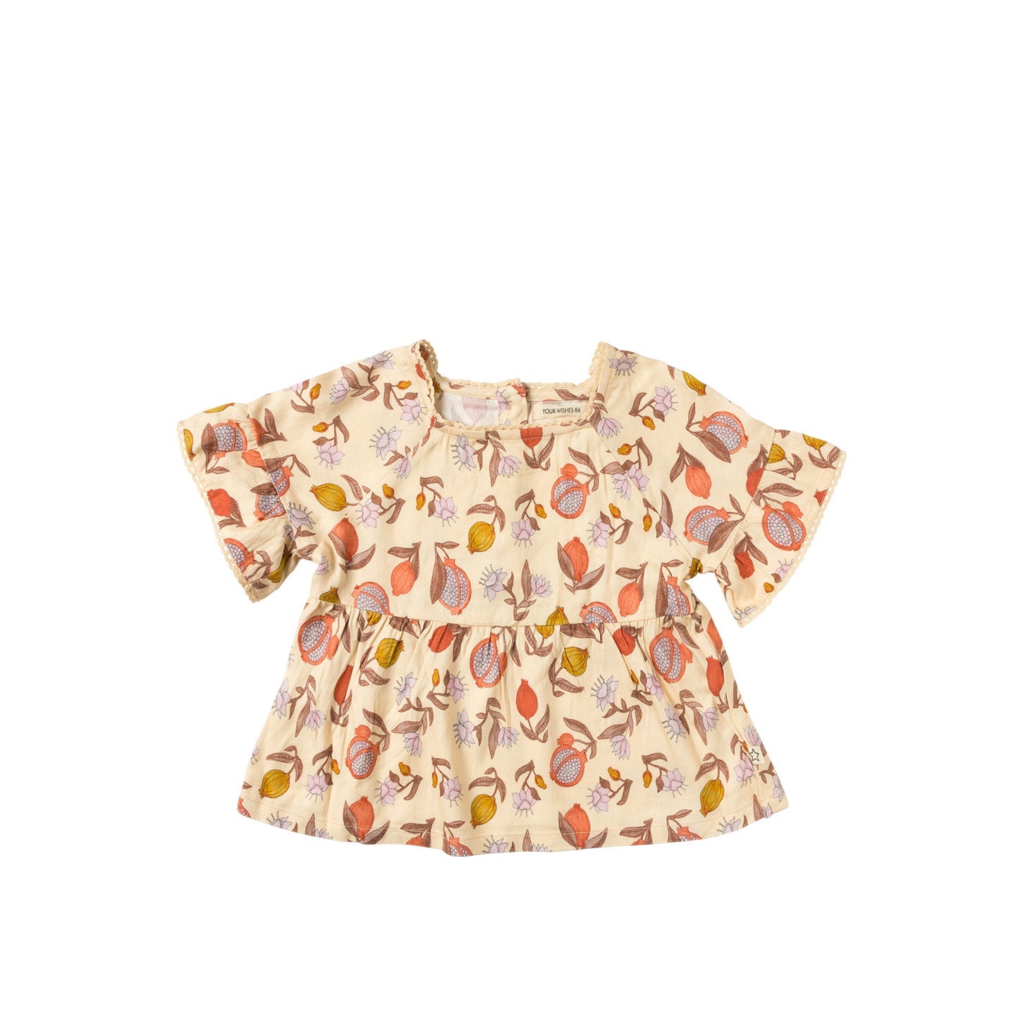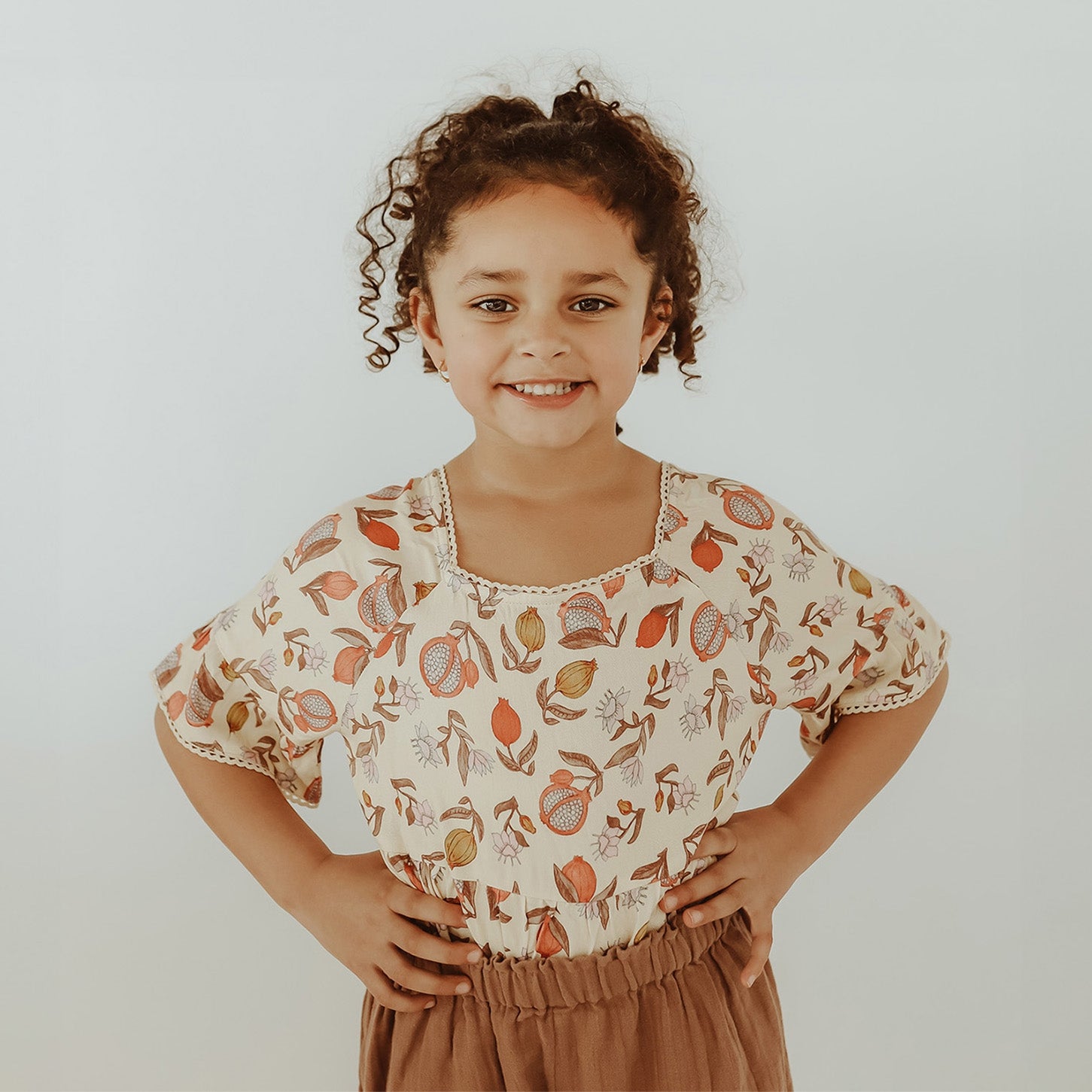 De Pia blouse is uitgevoerd in een rijke maar kwetsbare viscose. We raden je aan deze blouse met veel liefde te behandelen door deze binnenstebuiten te wassen en weg te houden van scherpe objecten. Zo kan jouw kleintje zo lang mogelijk plezier hebben van de Pia blouse!