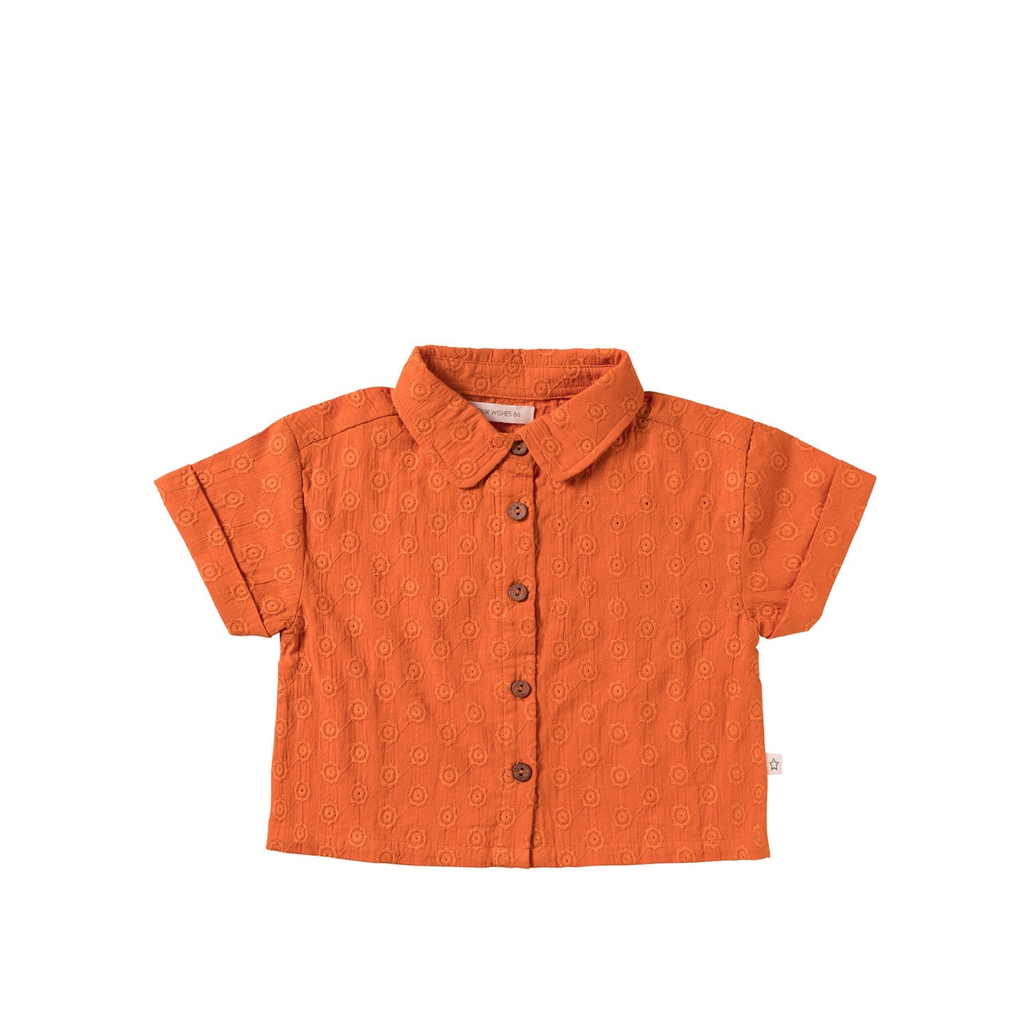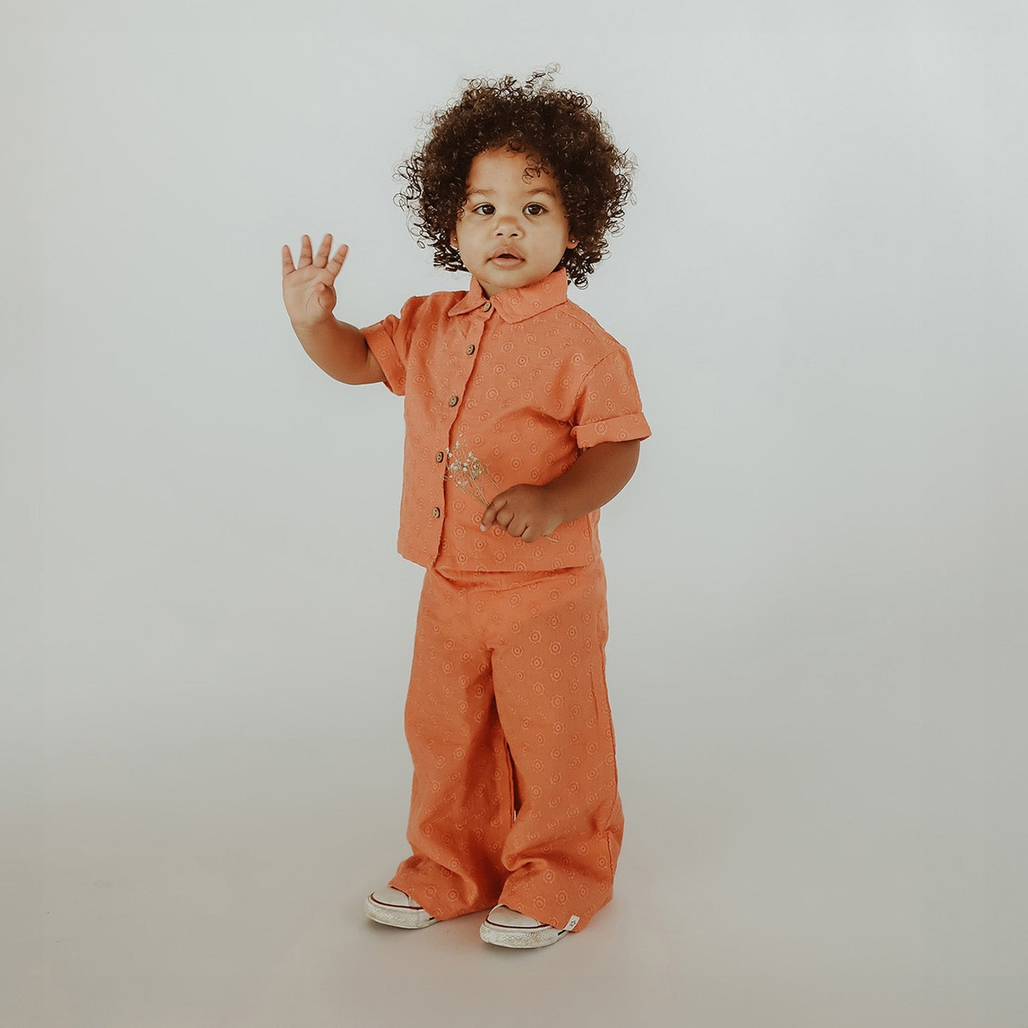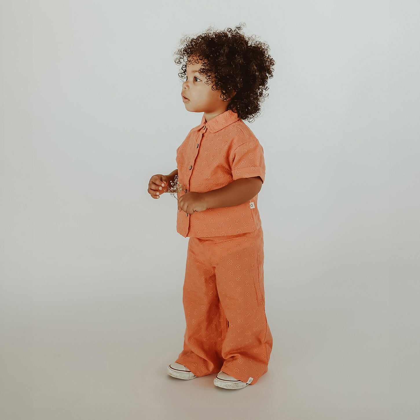 An orange item a day keeps the doctor away met de Pika blouse, verkrijgbaar vanaf maat 80 tot 140. De blouse is uitgevoerd in 100% katoen en is afgewerkt met geborduurde details. De blouse sluit door middel van een knoopsluiting en de pasvorm is iets korter dan een gewone blouse, maar het is zeker geen cropped model! De Pika blouse is de perfecte match met de Bar broek, dus draag ze samen voor een leuke co-ord set. Uiteraard is de blouse veelzijdig genoeg om op een stoere spijkerbroek te dragen, zoals bijvoorbeeld de Parker cargobroek. Heb jij dit fijne item al aan je winkelmandje toegevoegd?