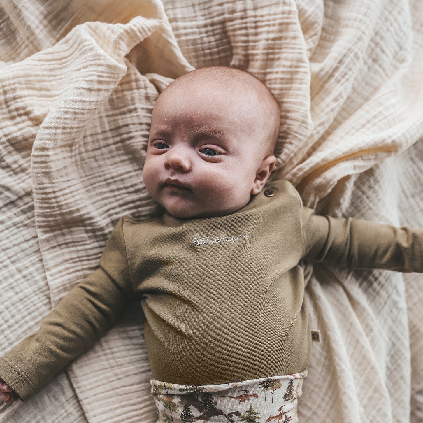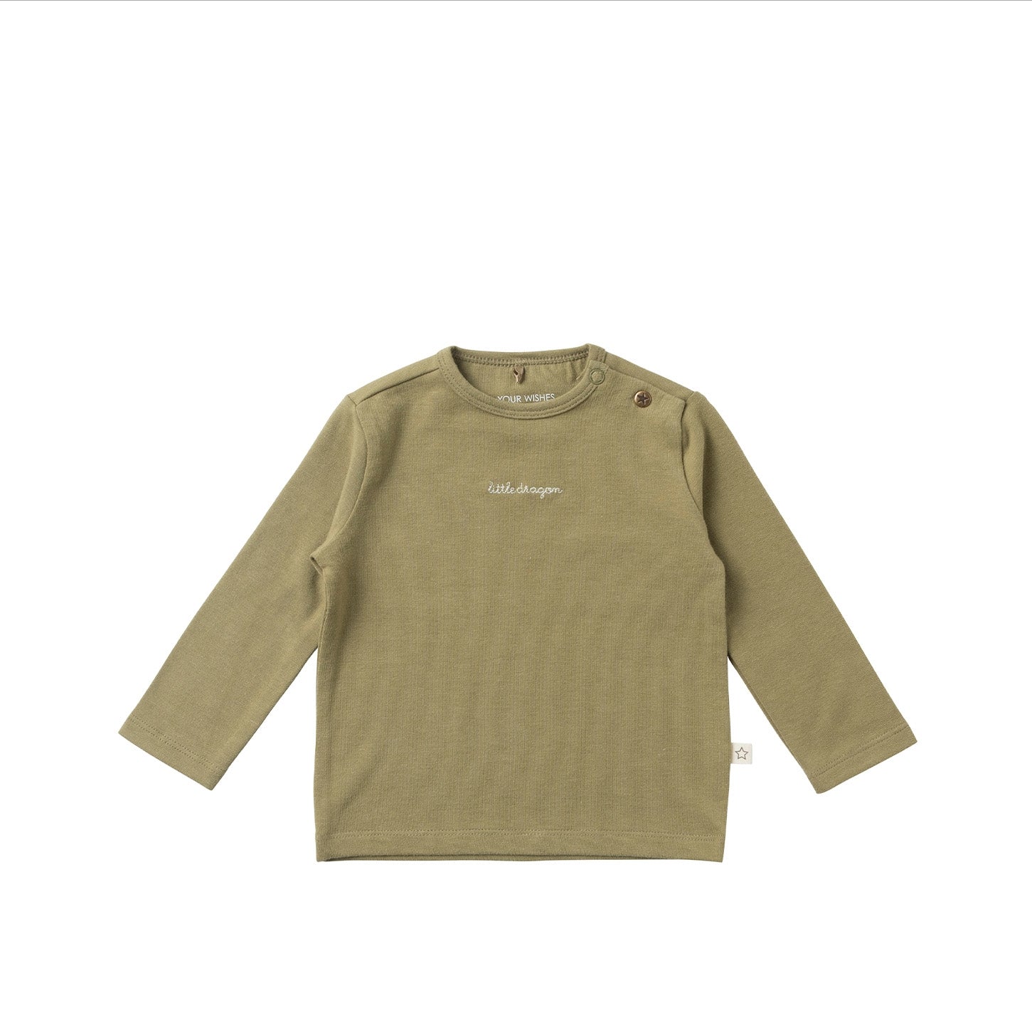 Het Slim Fit Shirt is de ideale toevoeging aan de garderobe van jouw kleine draak en is verkrijgbaar vanaf maat 50 tot 74. Het shirt met lange mouwen is uitgevoerd in een combinatie van katoen en modal en voelt hierdoor heerlijk zacht aan. De stof sluit goed aan rond het lichaam van jouw kindje en neemt tot 50% meer vocht op, wat plakken en zweten tijdens het dragen voorkomt. Het Slim Fit Shirt heeft twee drukknopen op de schouder die ervoor zorgen dat het gat van de hals groter gemaakt kan worden. Dit is ideaal voor het aan- en uittrekken van het shirt, helemaal als de hoofdjes nog zo kwetsbaar zijn! Op de borst is in het klein little dragen geborduurd als een schattige finishing touch. Combineer dit fijne shirtje met lange mouwen met de drakenprint Fitted Pants en jouw kleine draak ligt er comfortabel maar stijlvol bij!