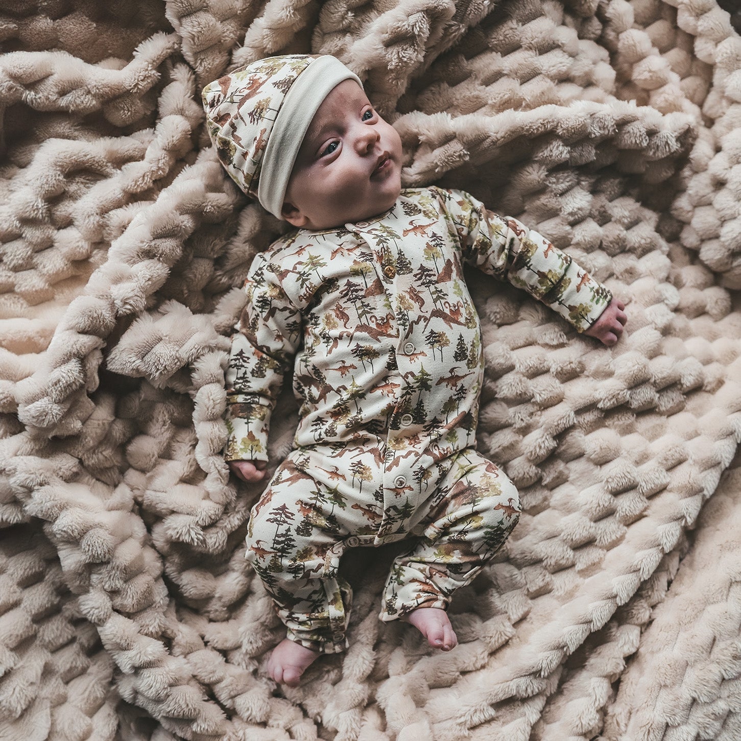 Het Slim Fit Jumpsuit is de ideale toevoeging aan de garderobe van jouw kleine draak en is verkrijgbaar vanaf maat 50 tot 74. Het boxpakje is uitgevoerd in een combinatie van katoen en modal en sluit goed aan rond het lichaam van je kindje. De stof neemt tot 50% meer vocht op, maar houdt toch goed de warmte van je kleintje vast! Het boxpakje met drakenprint heeft daarnaast lange mouwen en kan van de hals tot de enkels helemaal opgemaakt worden dankzij de drukknopen. Dit maakt het een ideaal pakje voor first-time parents, die nog een handigheid moeten krijgen in het aankleden van hun kindje. Wanneer je de luier moet verschonen, hoeven de drukknopen maar open tot aan het kruis en dan kan je al bij de luier! Hierdoor blijft je kindje lekker warm en comfortabel bij het verschonen. Combineer het draken boxpakje met de bijpassende Reversible Beanie met drakenprint en jouw kindje ligt er niet alleen comfortabel, maar ook stijlvol bij!