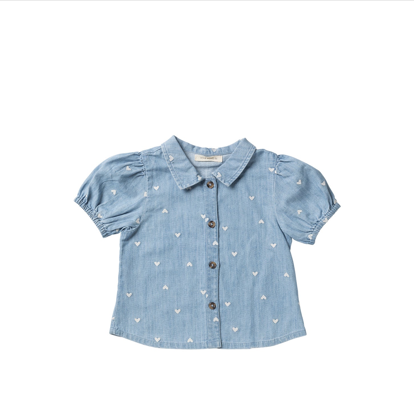 Dit prachtige shirt is een must-have uit de Denim Capsule Summer '25 collectie. Gemaakt van 100% slub denim katoen, is het een ademend en daardoor erg fijn voor zonnige dagen. De speelse pofmouwen en subtiele all-over hartjes borduursels zorgen voor een stijlvolle en schattige uitstraling, perfect voor elke gelegenheid.