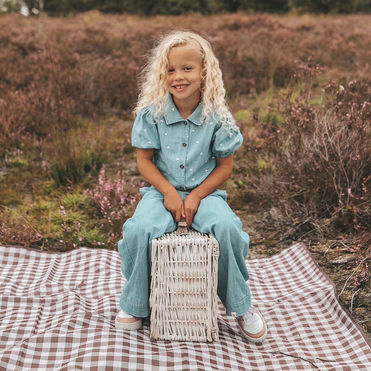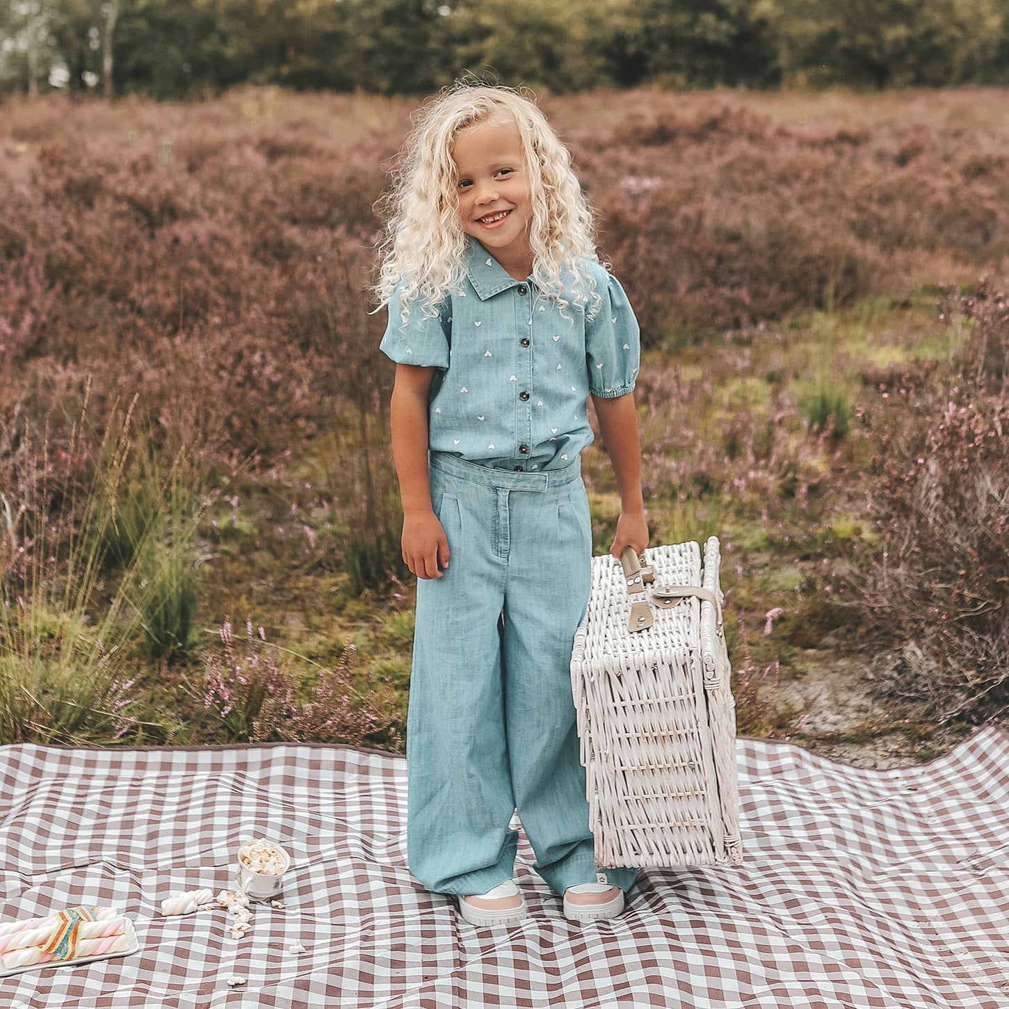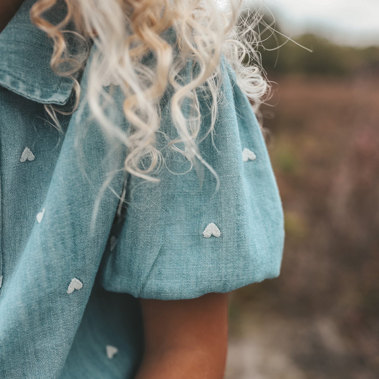 * Speelse pofmouwen met all-over hartjesborduursels.