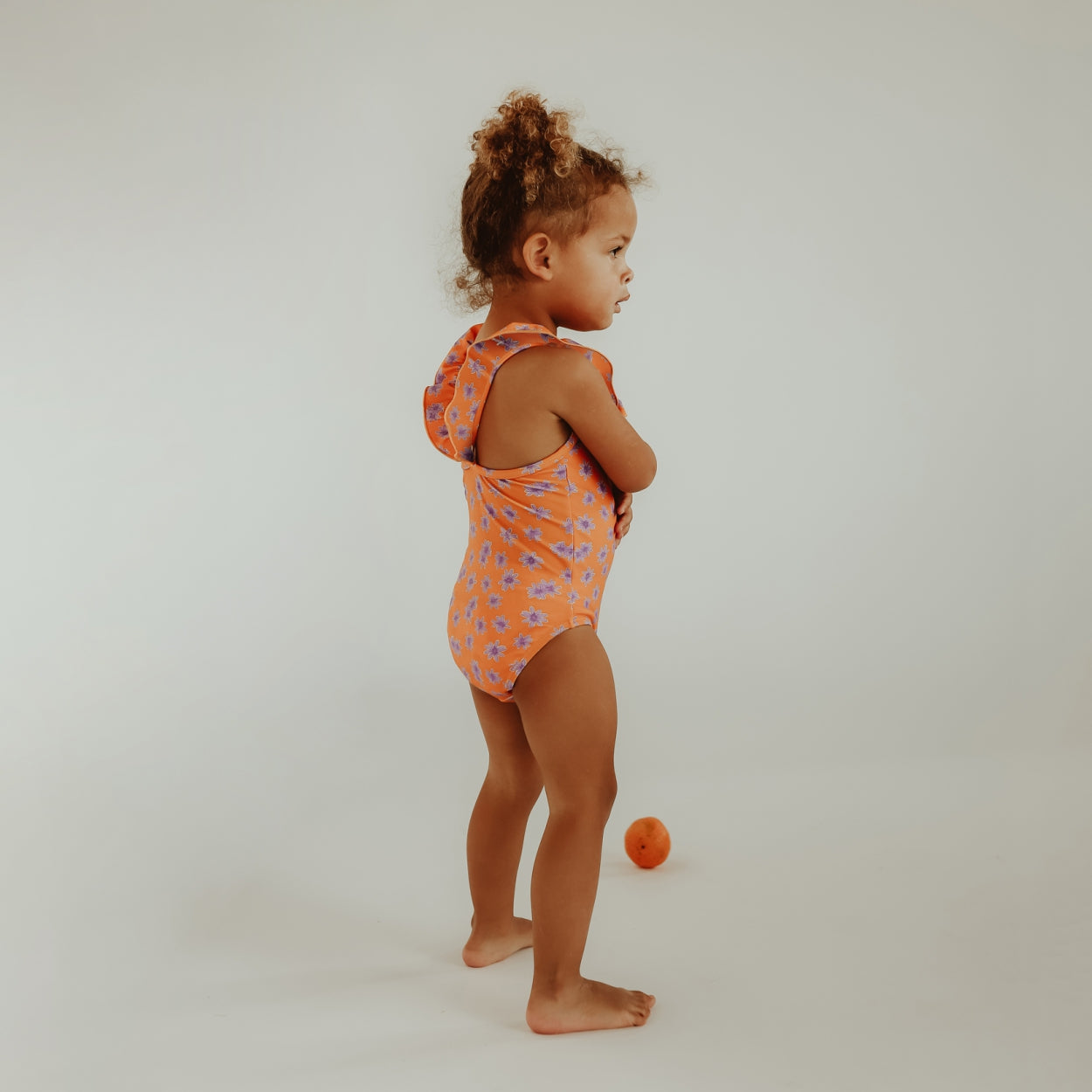 Op zoek naar een uniek badpak voor meisjes? Dit feloranje badpak met lila bloemen is een geweldige keuze! Het badpak met ruches heeft een mooie pasvorm, waardoor het badpak mooi op zijn plek blijft zitten tijdens het zwemmen en spelen. Een dagje naar het zwembad of strand? In dit kleurrijke zwempak ziet jouw kind er gegarandeerd stralend uit.