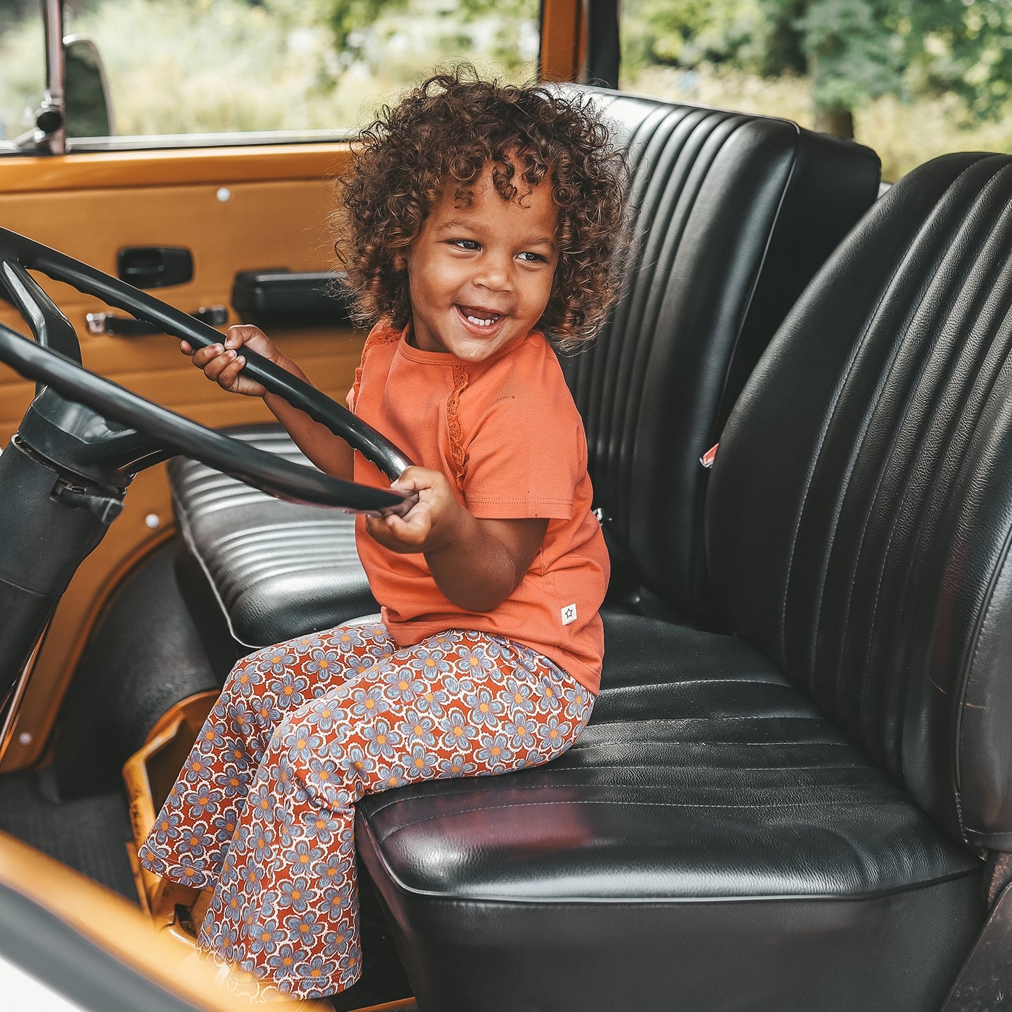 De Flared Legging uit de Your Wishes Spring Summer 2026 collectie is een echte eyecatcher binnen de meisjescollectie. De all-over bloemenprint in warme koraal- en roesttinten gecombineerd met zachte blauwtinten geeft deze legging een uitgesproken uitstraling die perfect past binnen het SS26 kleurenpalet.