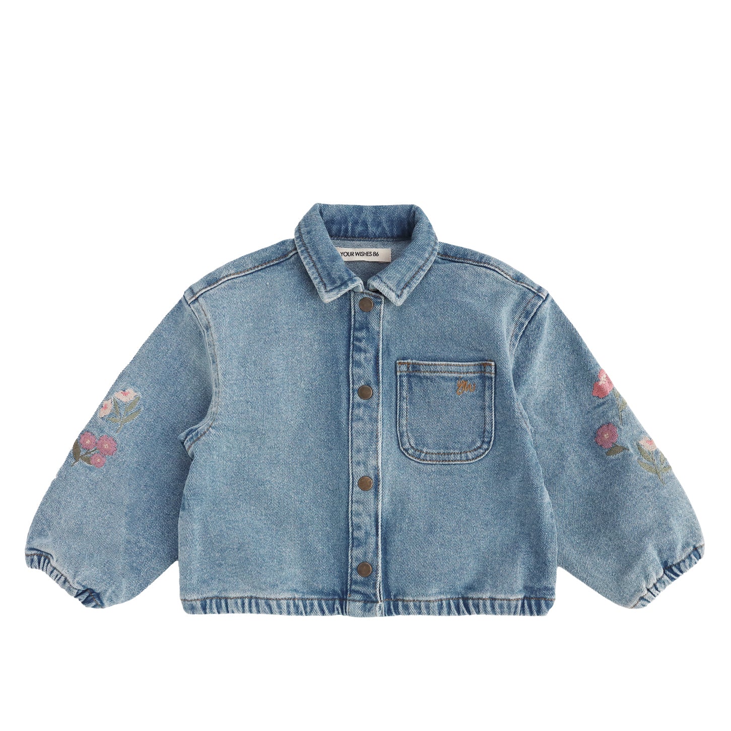 De bloemenborduursels zorgen voor een speels en vrolijk accent en maken van dit denim jasje een echte eyecatcher binnen de Your Wishes Spring Summer 2026 collectie. De licht puffy mouwen en de elastische afwerking aan de onderzijde geven het jasje een comfortabele en moderne pasvorm.
