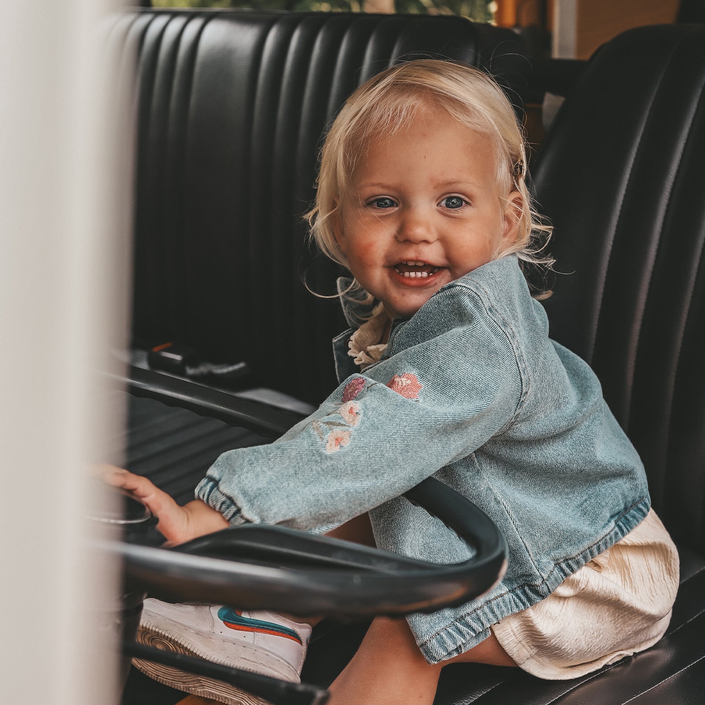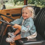 Dit meisjes denim jasje met bloemenborduursel is perfect te combineren met jurken, rokken en jeans uit de collectie en geeft elke outfit direct een vrolijke en stijlvolle touch.