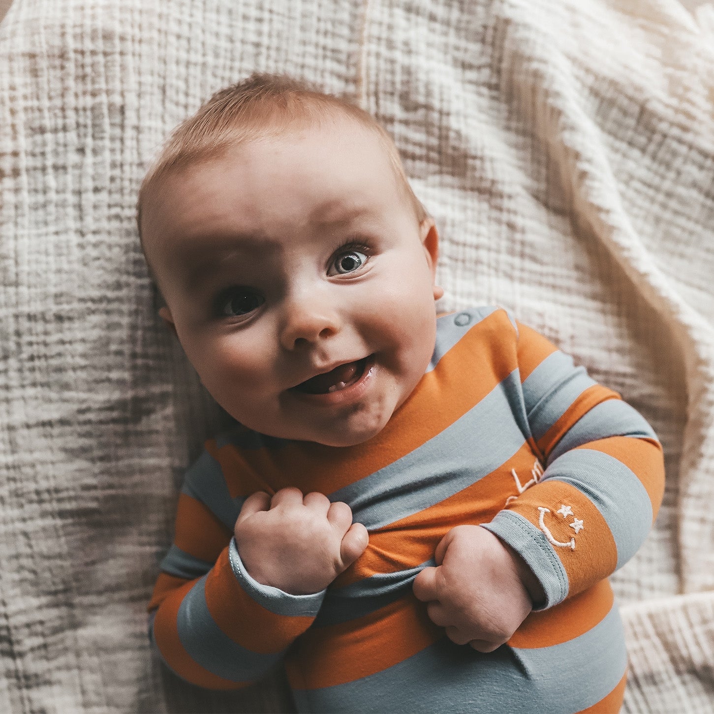 Een comfortabele keuze voor pasgeboren jongens, dat is de Stripe Fitted Romper. Deze romper is ontworpen en gemaakt van een hoogwaardige mix van 47% modal, 47% katoen en 6% elastaan. De stof is voorzien van een yarn-dye-strepen, een luxere methode waarbij de garen gekleurd worden voordat ze in de stof geweven of gebreid worden, wat resulteert in een mooie streep zonder doorzichtige onderkleur. Combineer de Stripe fitted romper met de Stripe Fitted Pants om de co-ord compleet te maken. Heb jij dit item al toegevoegd aan jouw winkelmandje?