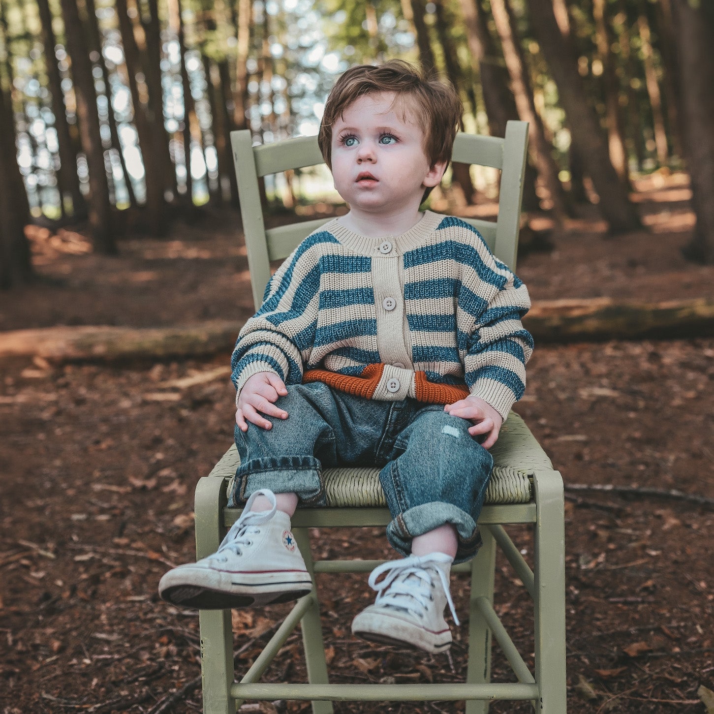 De Stripe Knit Relaxed Cardigan biedt een perfecte mix van casual comfort en kleurrijke stijl voor jongens. Het vest is gemaakt van 55% acryl en 45% katoen. Deze cardigan is zacht en ideaal voor de herfst- en wintermaanden. De fijne knit steek is vergelijkbaar met onze Nevada/Montana truien, wat zorgt voor een nonchalante look. De verschillende kleuren strepen voegen een speels en vrolijk thema toe aan elke outfit. Maak de outfit compleet met de Denim Straight Leg Jeans en laat jouw kindje stralen.