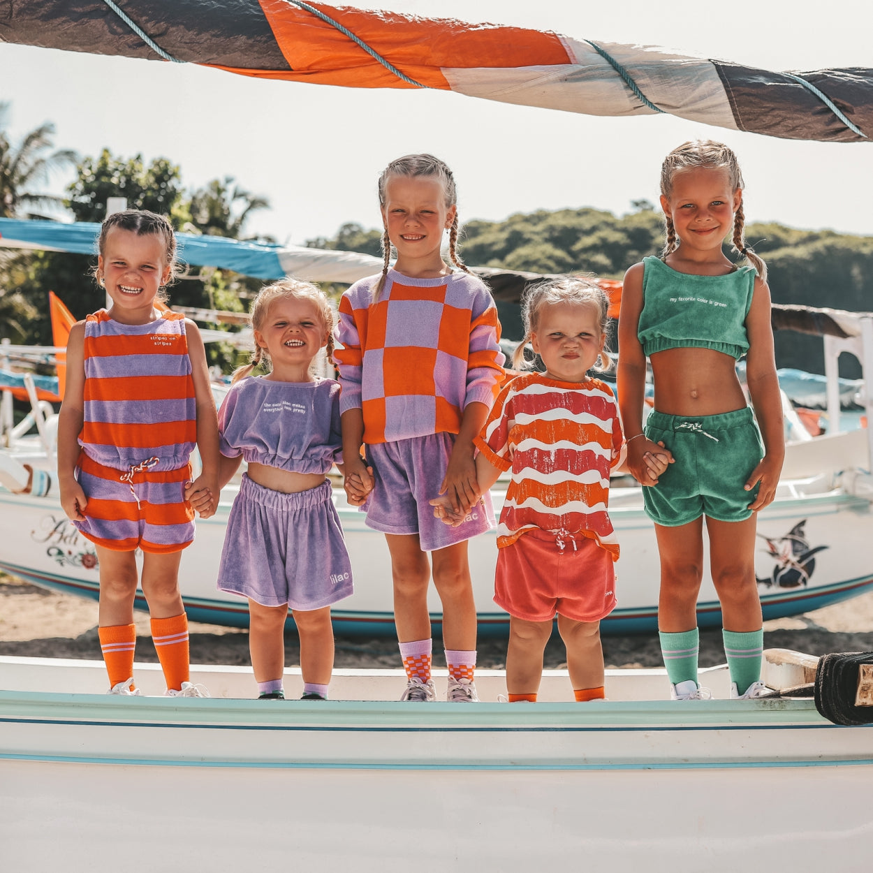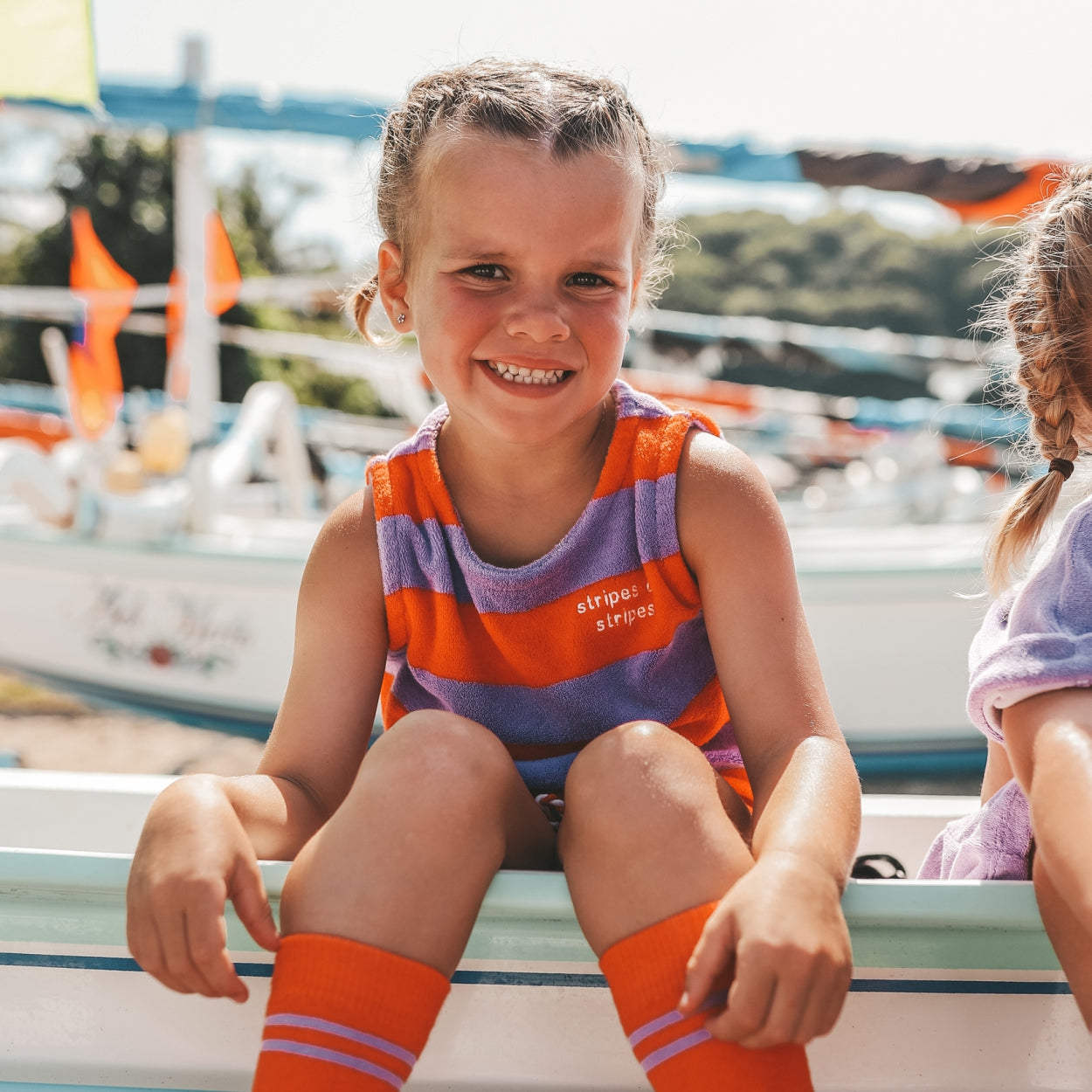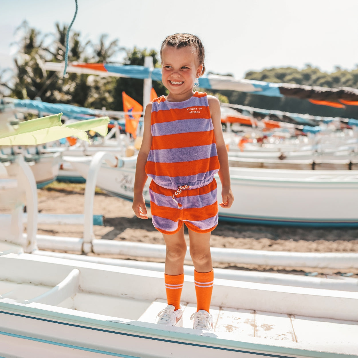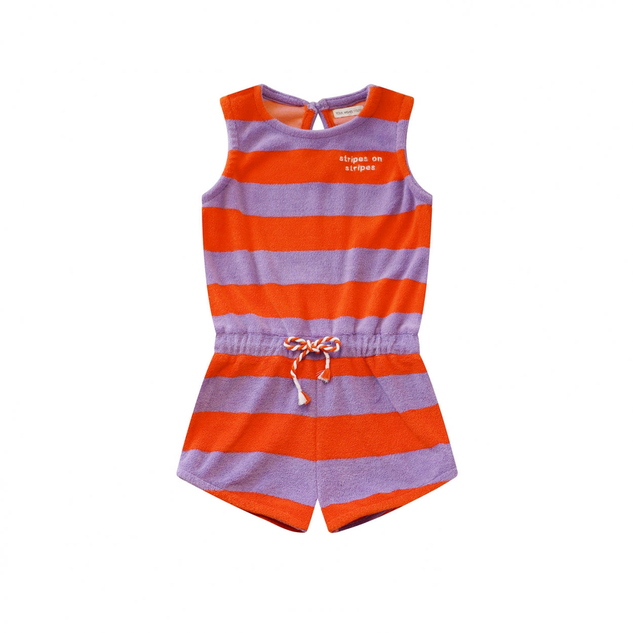 Laat je kinderen zorgeloos spelen en bewegen in onze gestreepte badstof jumpsuit! Gemaakt van zachte badstof, biedt deze jumpsuit extra comfort aan je kind. Met een elastische tailleband en een koord, kan je de jumpsuit eenvoudig aanpassen voor een perfecte pasvorm. Deze kleurrijke jumpsuit is de perfecte keuze voor een warme zomerdag. Laat je kinderen opvallen met deze vrolijke en comfortabele jumpsuit.