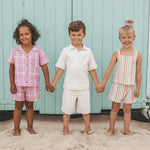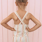 De Singlet uit de Your Wishes Spring Summer 2026 collectie is een luchtige en stijlvolle meisjes top met een verfijnd streepdessin. De off-white basis wordt gecombineerd met verticale strepen in zachte zomertinten zoals lila, perzik, koraal en mintgroen, perfect passend binnen het SS26 kleurenpalet.