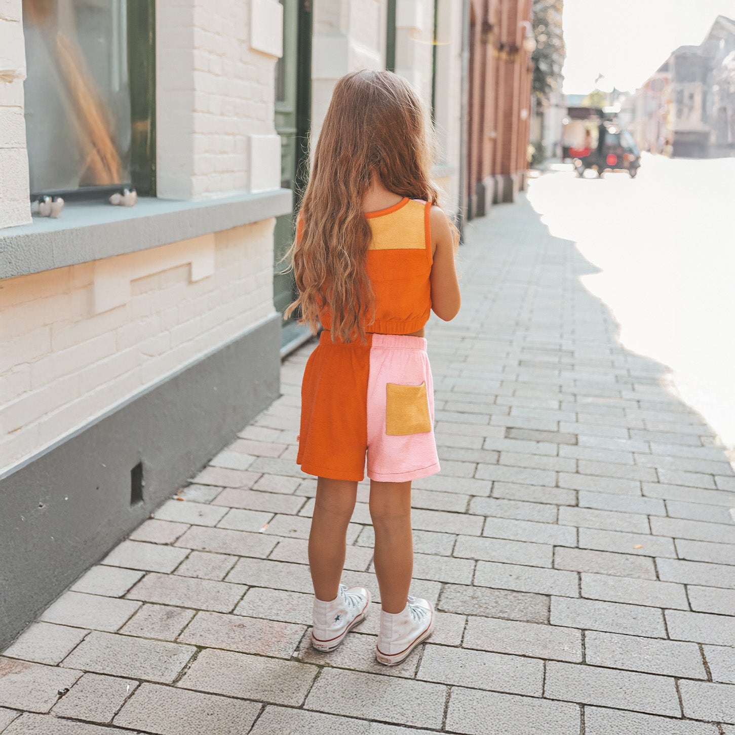 Everybody loves the sunshine. Het Terry Crop Singlet is een trendy items voor meisjes. Dit Singles is gemaakt van een badstof kwaliteit wat zorgt voor een soepele pasvorm. De cropped fit en elastische onderrand geven het een speelse uitstraling, terwijl de rode, roze en gele kleur de schouders en en het achterpand een moderne touch toevoegen.