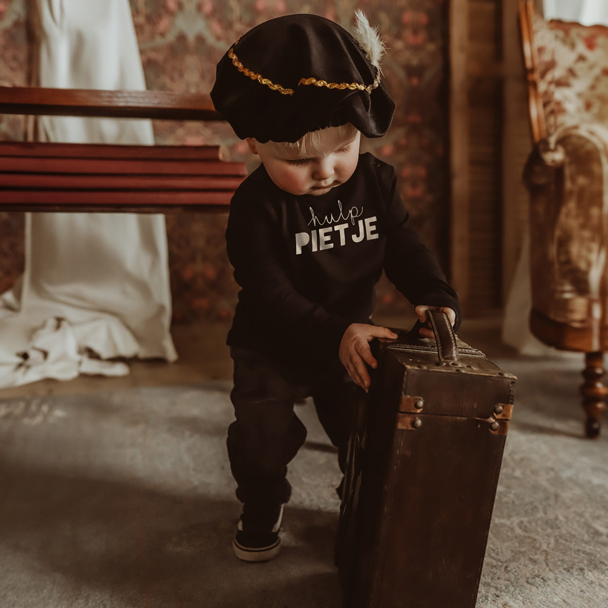 Zodra Sinterklaas in het land is kan een Velvet Pietenmutsje natuurlijk niet meer ontbreken in de kledingkast. Dit fijne mutsje is een one size fits all dankzij de elastieken band, maar zit erg comfortabel op het hoofd door de zachte velvet stof. De pietenmuts is afgewerkt met gouden details waar een wit veertje in verwerkt zit. Combineer het pietenmutsje met het unisex Pepernootje sweater en maak de kids klaar voor een nieuw Sinterklaasseizoen!