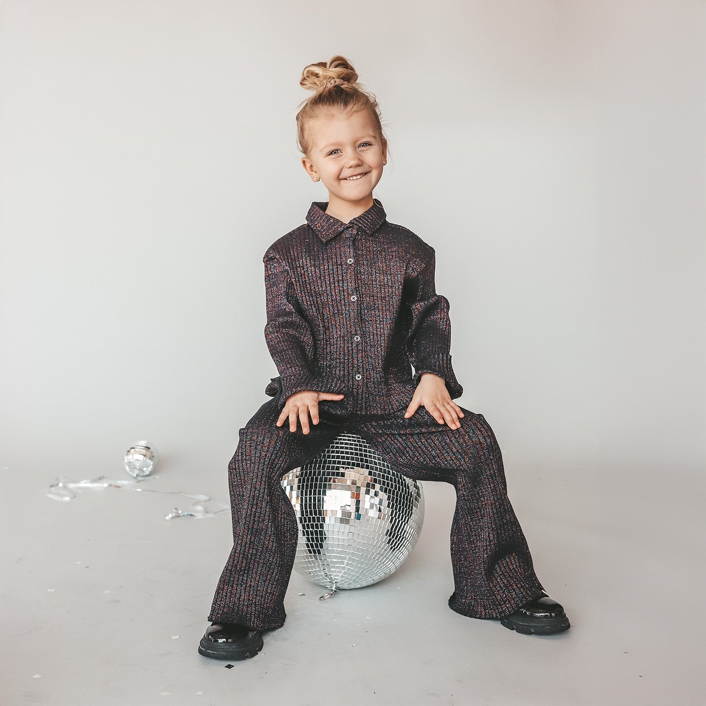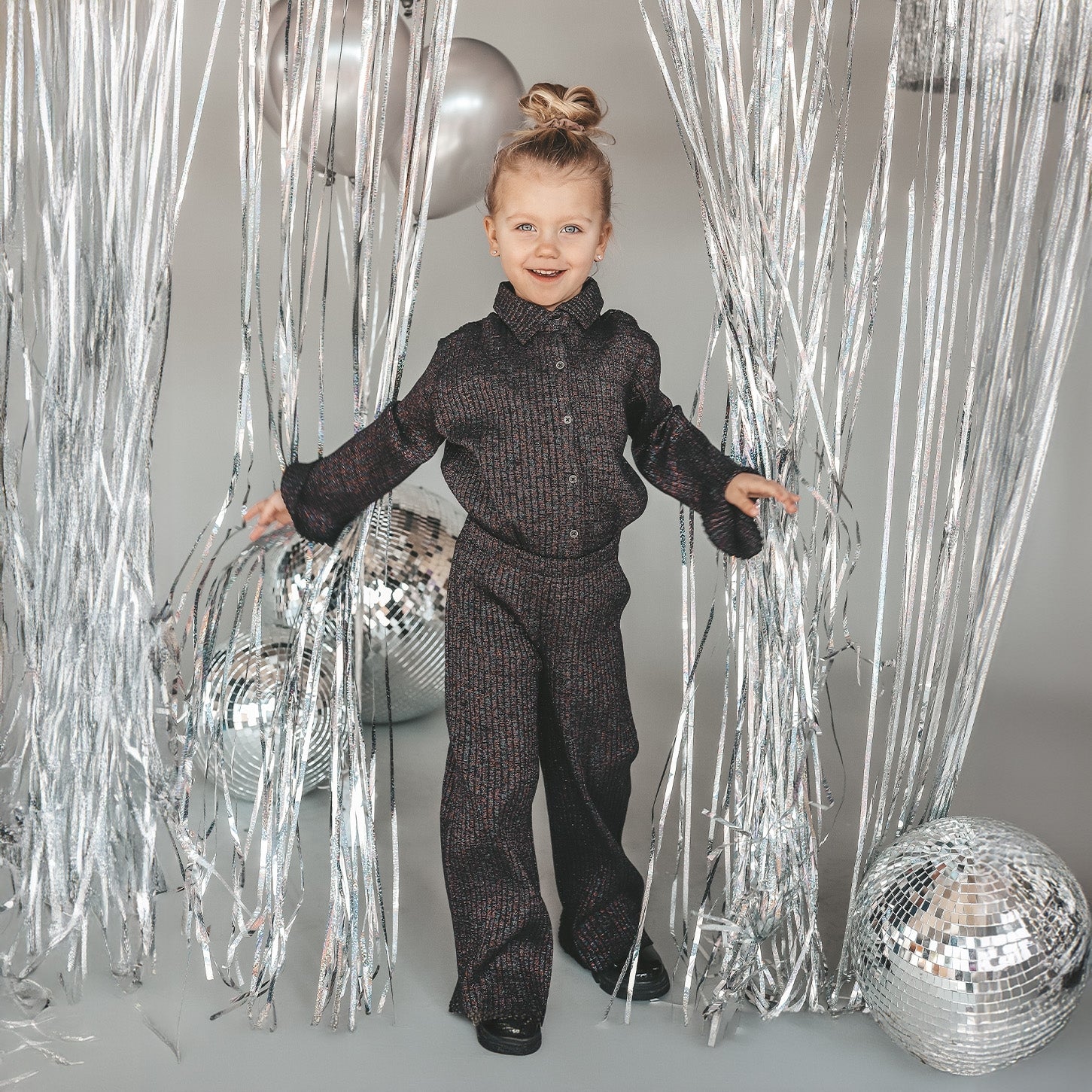 Dance until midnight met de Midnight Wide Leg Pants, verkrijgbaar vanaf maat 80 tot 140. De broek is uitgevoerd in een combinatie van katoen en elastaan, waarbij er glitter in de stof verweven zit. Doordat de glitter dus in de stof zit, zal dit niet vervagen of afgeven door het dragen of wassen van de broek. De Wide Leg Pants heeft een elastische tailleband en wide leg pasvorm, wat betekent dat de broek goed aansluit op de taille en heupen en vanuit daar wijd uitloopt tot de enkels. Maak van de Midnight Wide Leg Pants een sprakly co-ord set en combineer deze met het Midnight Cropped Shirt (LINK PRODUCT). De Tule Longsleeve zal er echter ook leuk bij staan, maar dat is eigenlijk alles wel wat je met deze wide leg pants combineert ;-).