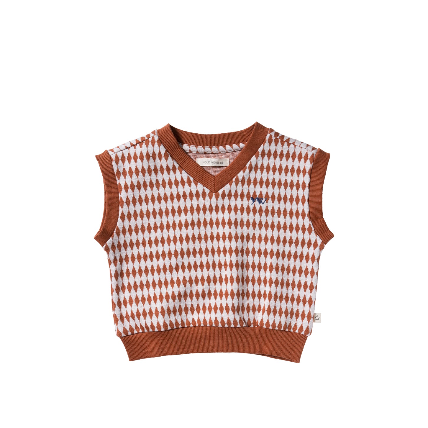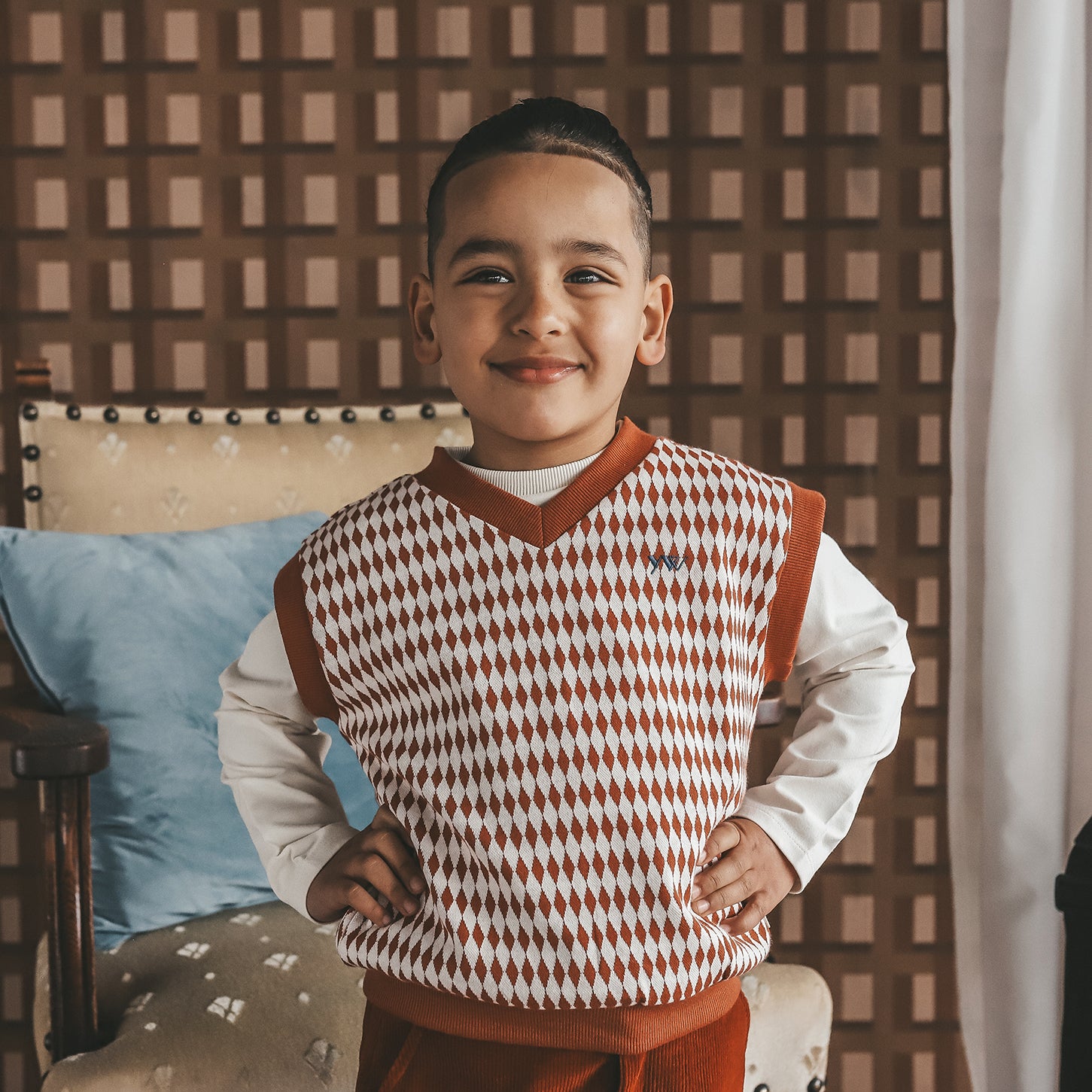 De V-neck Spencer is het ideale item voor jongens die comfort en stijl moeiteloos willen combineren. Verkrijgbaar in maat 80 tot 140, is deze spencer gemaakt van een luxe jacquard stof met een subtiel en speels patroon. De zachte stof voelt comfortabel aan, terwijl de V-hals en ribgebreide afwerking bij de taille en armsgaten zorgen voor een nette, verzorgde uitstraling. Perfect om te dragen over de Oversized Longsleeve voor een extra laagje warmte en stijl. Combineer de spencer met de Loose Jeans, en jouw kleintje is helemaal klaar voor een nieuwe dag vol avontuur.